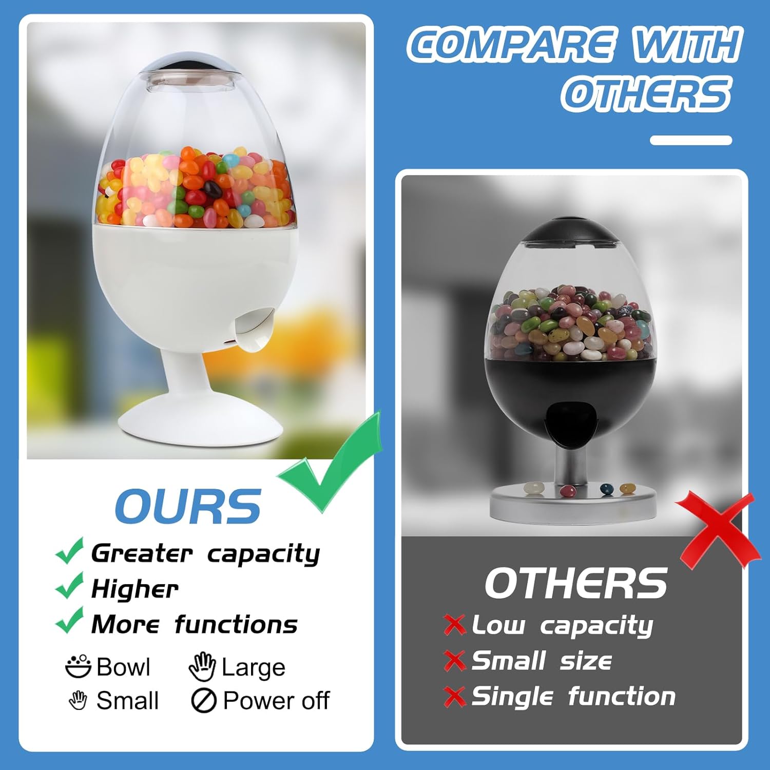 🍬【 】Electric candy dispenser has a good seal to keep candies,cereals fresh.Great for dispensing M&M’s,chocolate beans,jelly beans,coffee beans,candies,peanuts.Can surprise party guests and enjoy a nice snack time together.