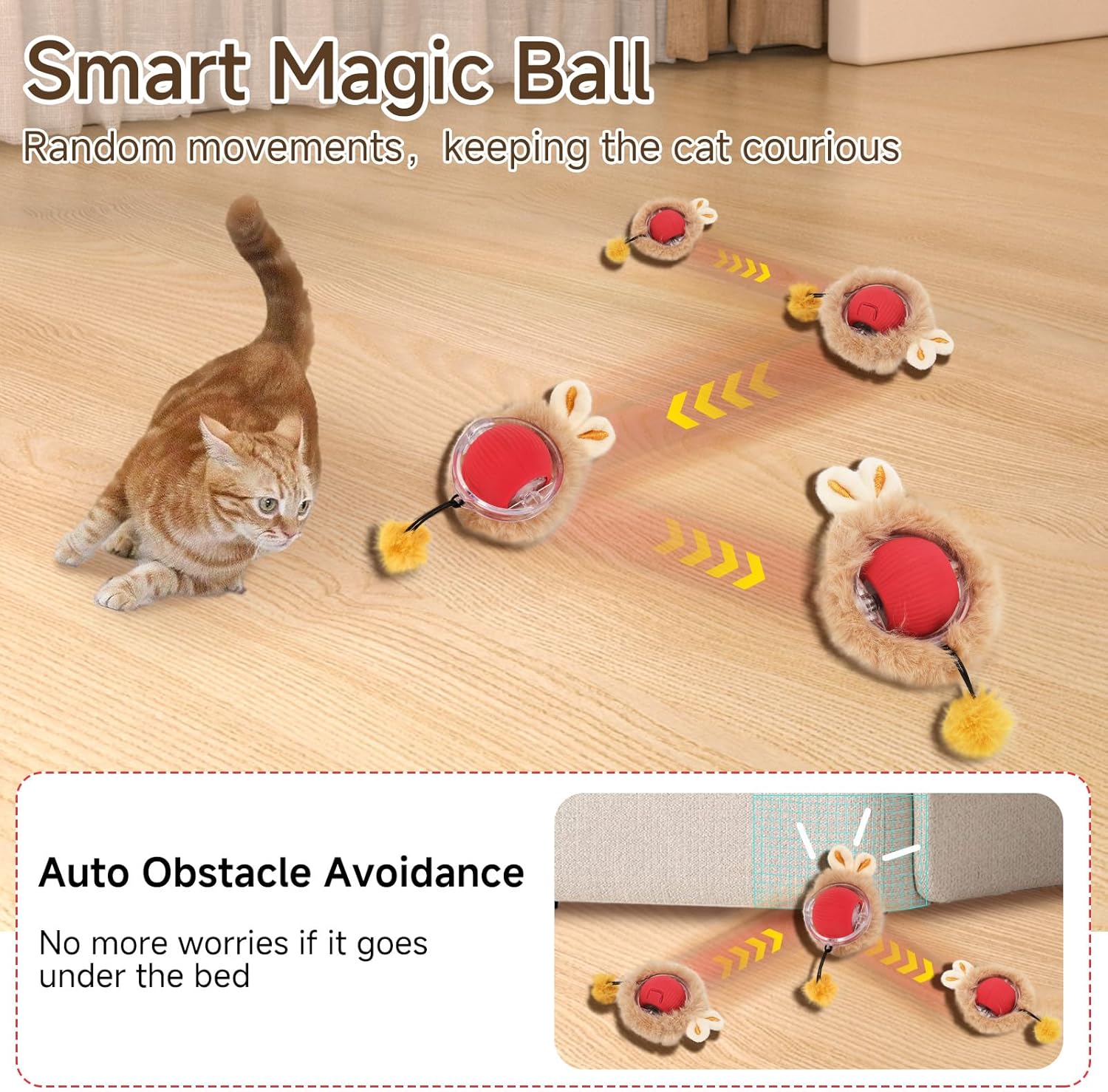 Inspired by Cat Behavior: Understanding that cats love playing with items hidden under blankets, we designed this interactive toy to mimic that experience. The ball can be placed inside a cloth bag, moving irregularly to captivate your cat’s interest and provide endless entertainment.