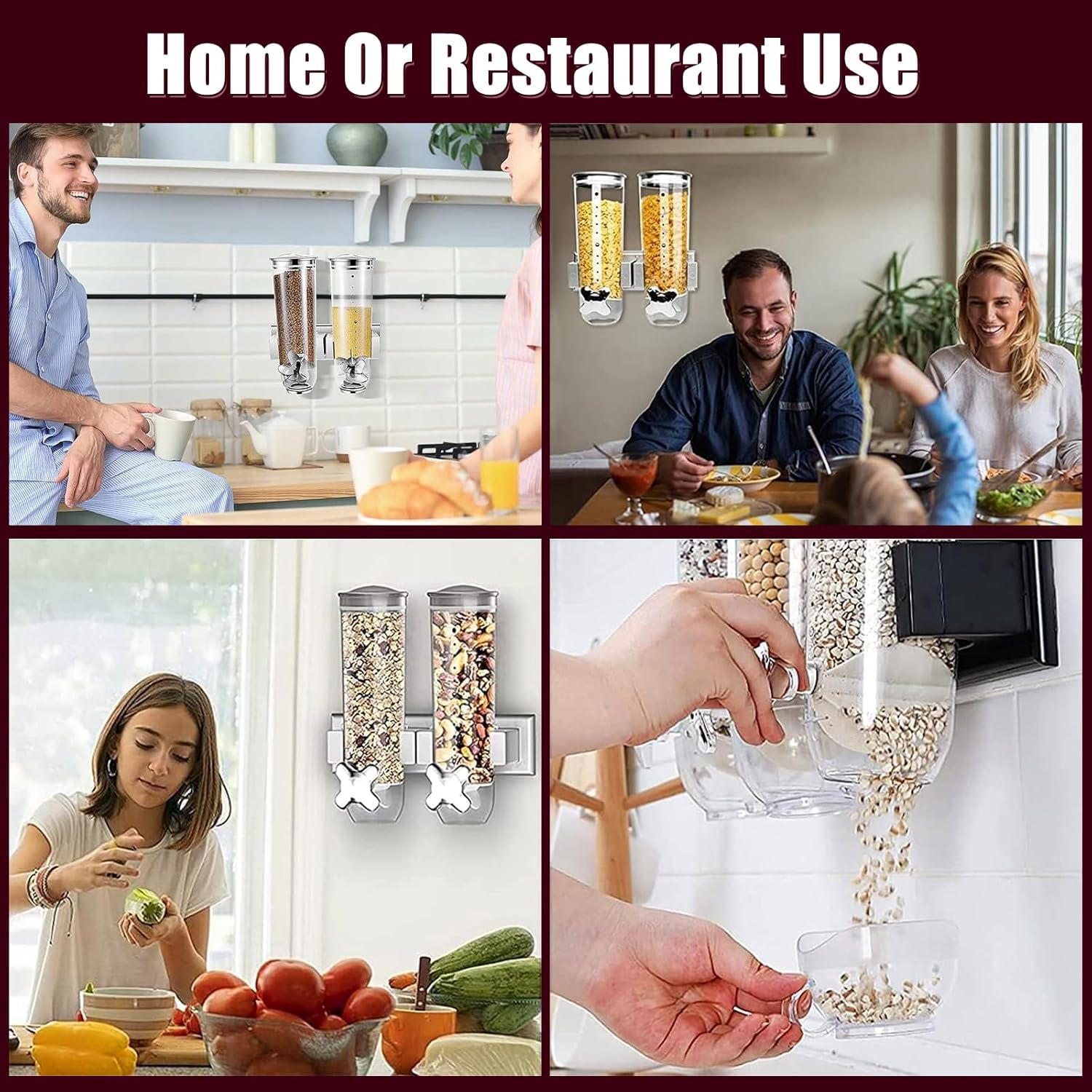 2 Pack Cereal Dispensers, Wall Mounted Food Dispenser Large Capacity Candy Dispenser, Double Dry Food Dispensers Wall Mount, Grain Dispenser for Kitchen Storage Oatmeal Snack Coffee Beans Candy, Black