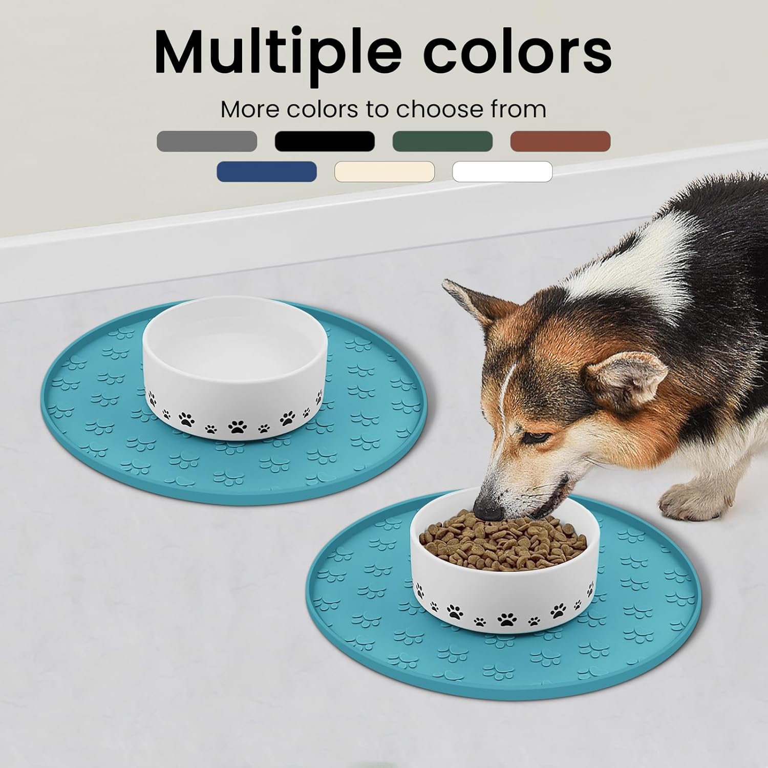 9 reviews for 2 Pack Dog Food Mat Anti-Slip Dog Bowl Mats for Food and Water, High-Lips Waterproof Dog Feeding Mat Prevent Messy Spills, Silicone Pet Placemat Puppy Trays for Small Medium Large Dogs Cats
