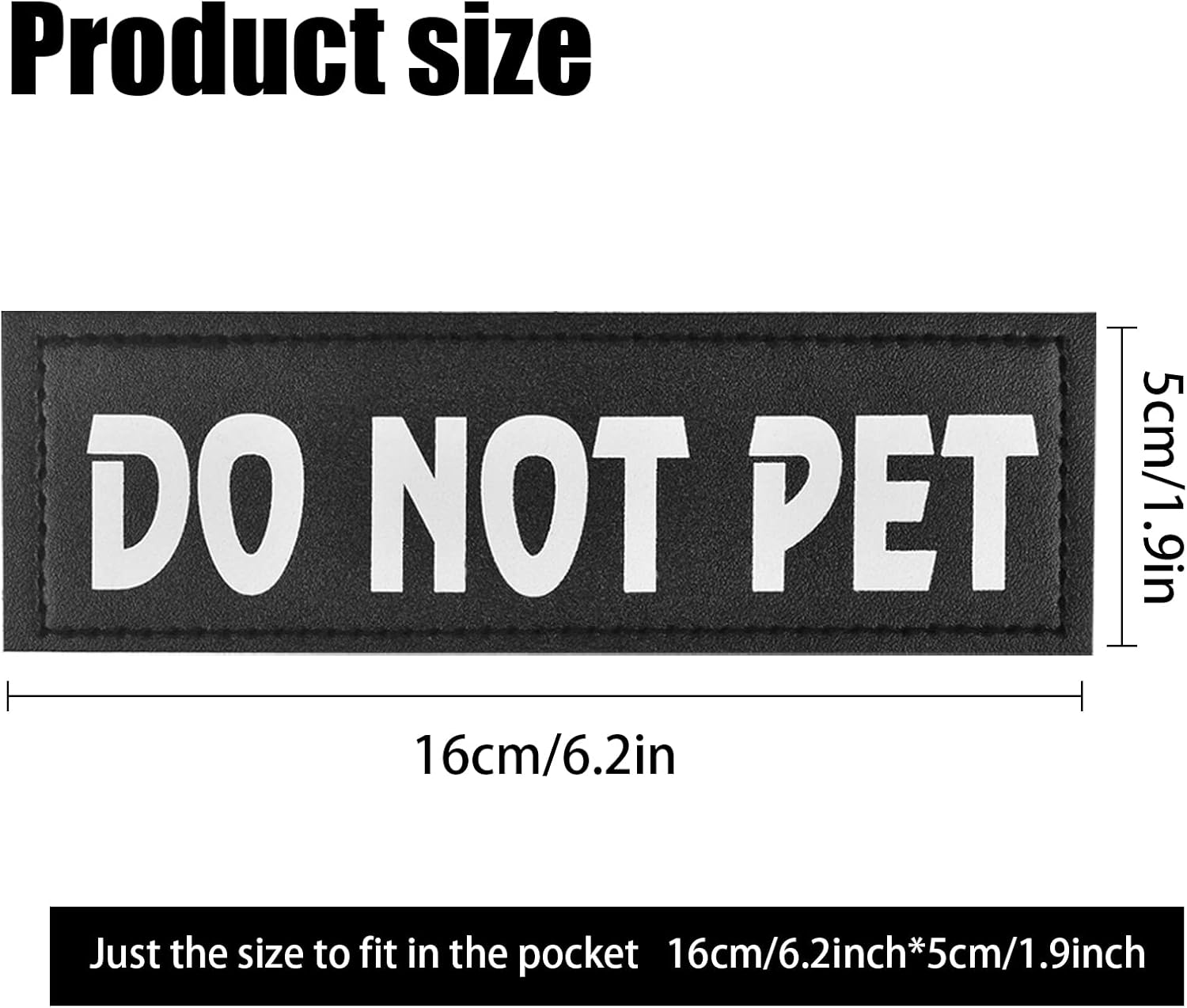 Suitable size: 2 packs of “Do Not PET” patches + 2 packs of “IN TRAINING” patches. Reflective dog patches are 16cm * 5cm (6.2 * 1.9inch). Enough for your daily use and replacement.