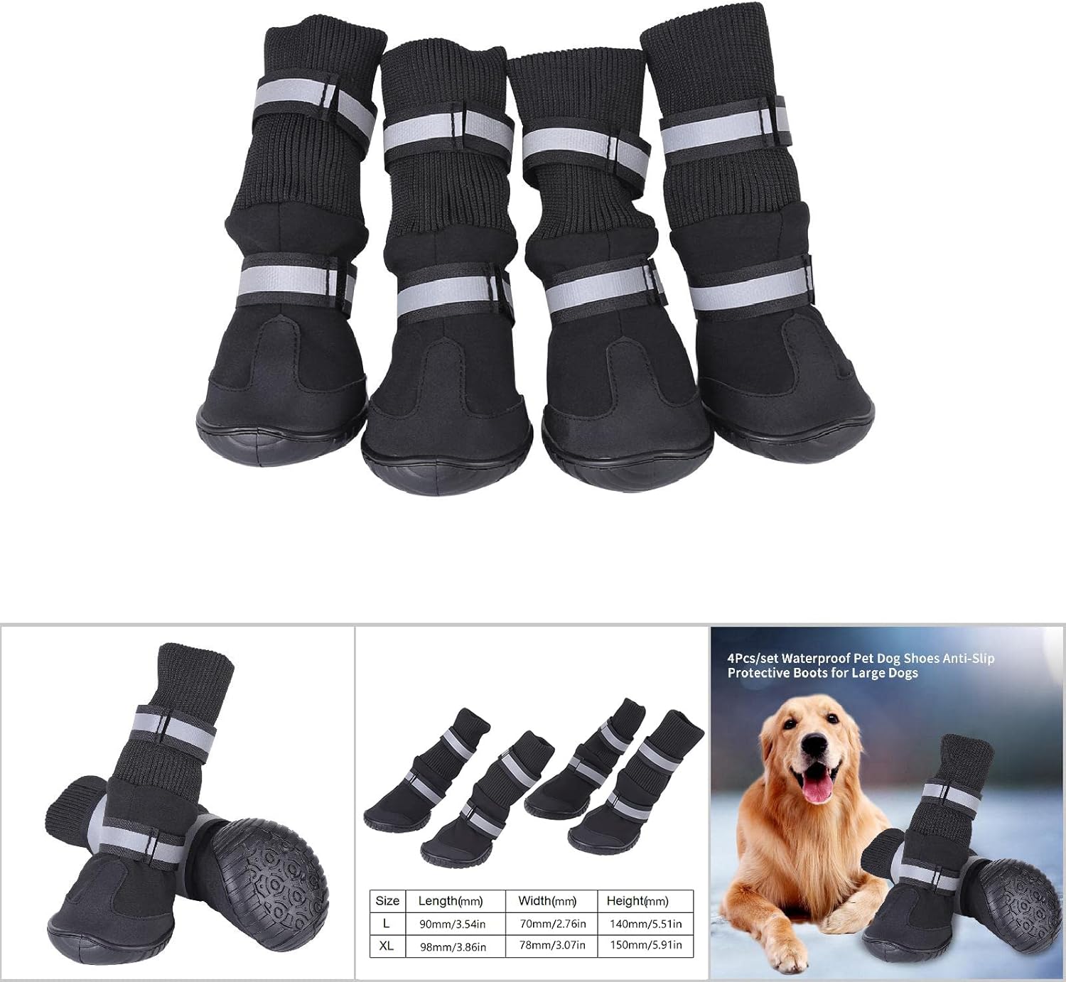 4pcs set Waterproof, Anti Slip Protective Boots dog boots Pet Dog Shoes for Large Dogs Red L ()