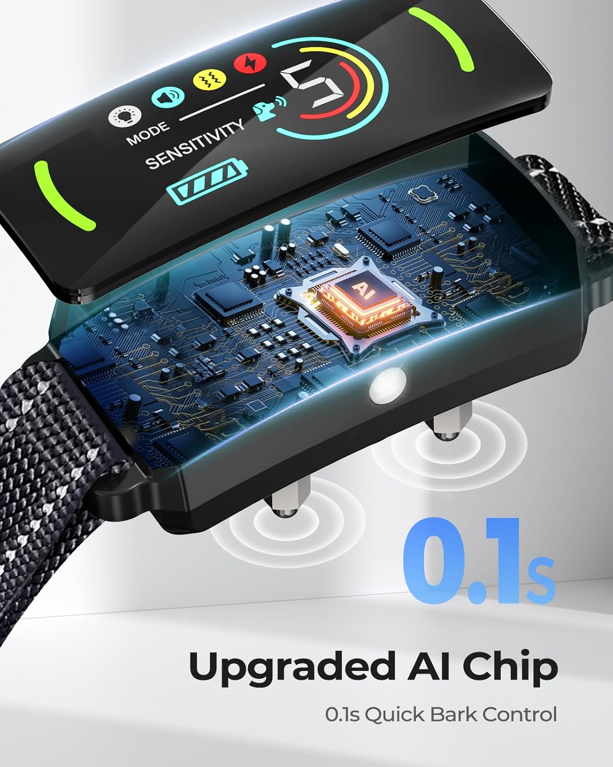 Intelligent Bark Recognition Technology: The GAJUX bark collar features an advanced smart barking recognition chip that responds to two specific triggers: barking and vibrations from vocal cords. This ensures accurate detection without the need for remote control, helping to minimize false activations
