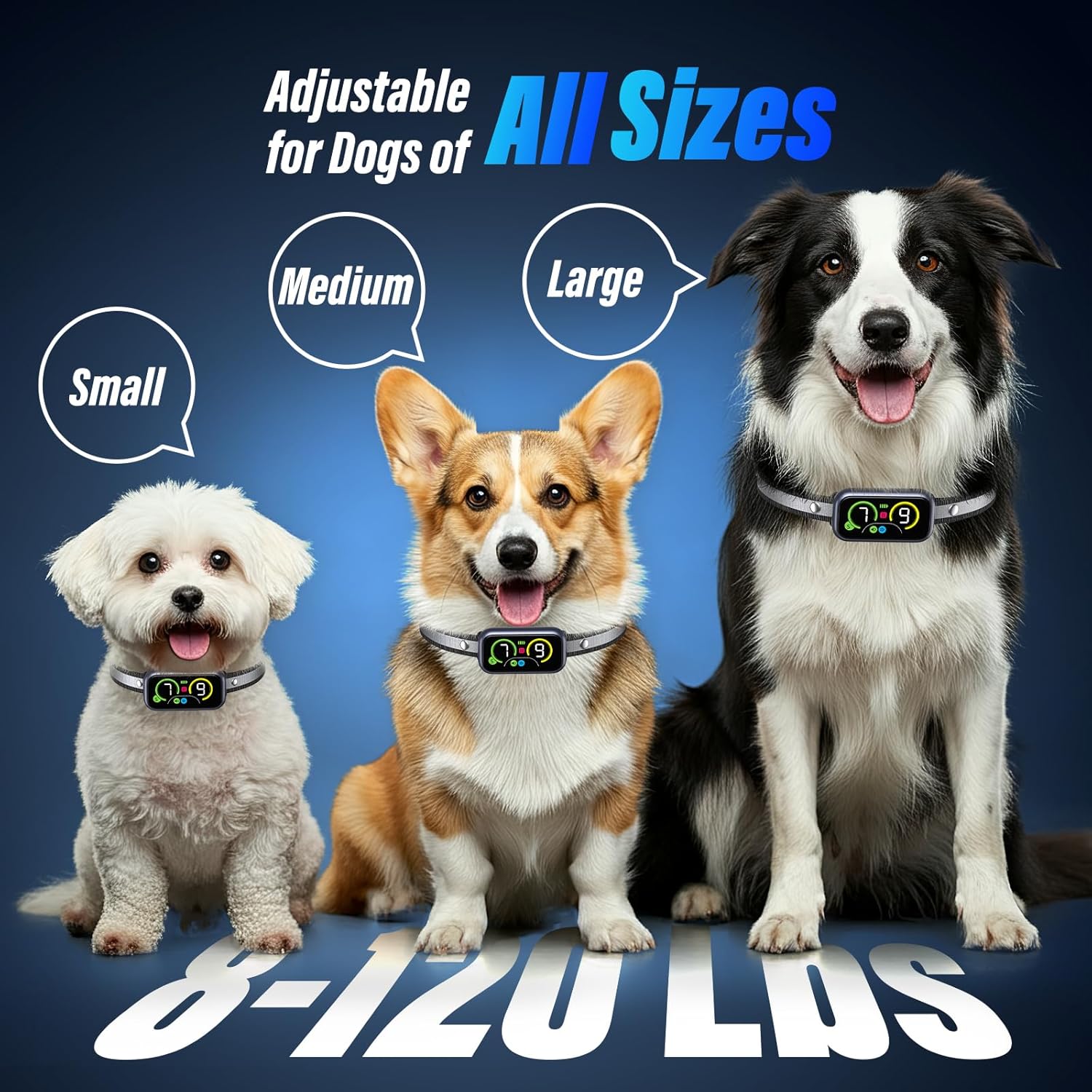 【UNBELIEVABLE THIN, INCREDIBLY EFFECTIVE, PERFECT FOR ALL SIZES OF DOGS】 The no bark collars for dogs use advanced accessories to make it smaller and thinner while being more effective. The adjustable strap is more comfortable & more durable due to heavy-duty nylon material. The dog barking collar fits dogs over 8-120lbs with neck sizes 6-23 inches. The bark collar for small dogs is also equipped with reflective strips, so your dog is safe even when running at night