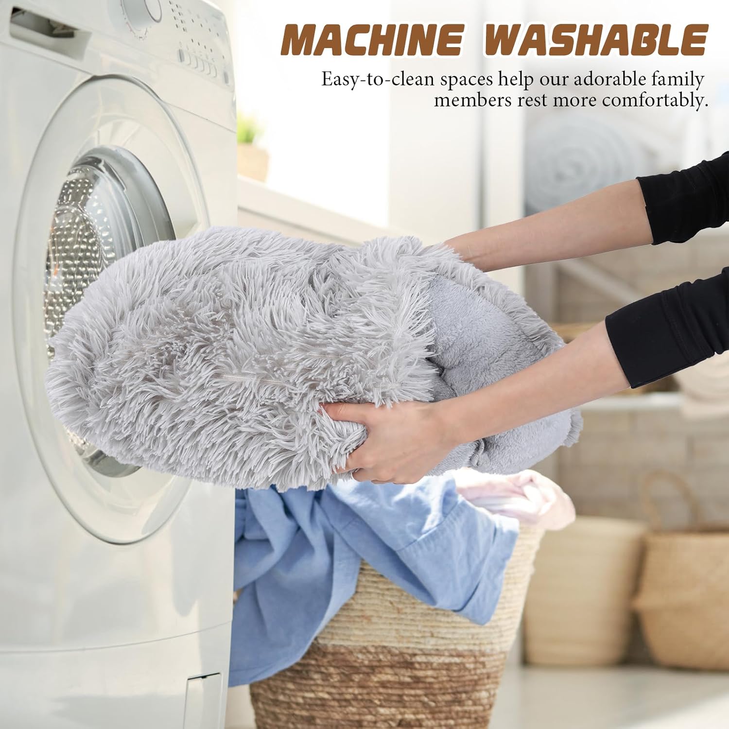 [2-in-1 Semi-Covered Design] The 20-inch pet bed features a semi-cave design to enhance your pet’s sense of security. Plus, by folding back the cover, it transforms into a donut-shaped bed that provides optimal support for your pet’s head and neck while they sleep.