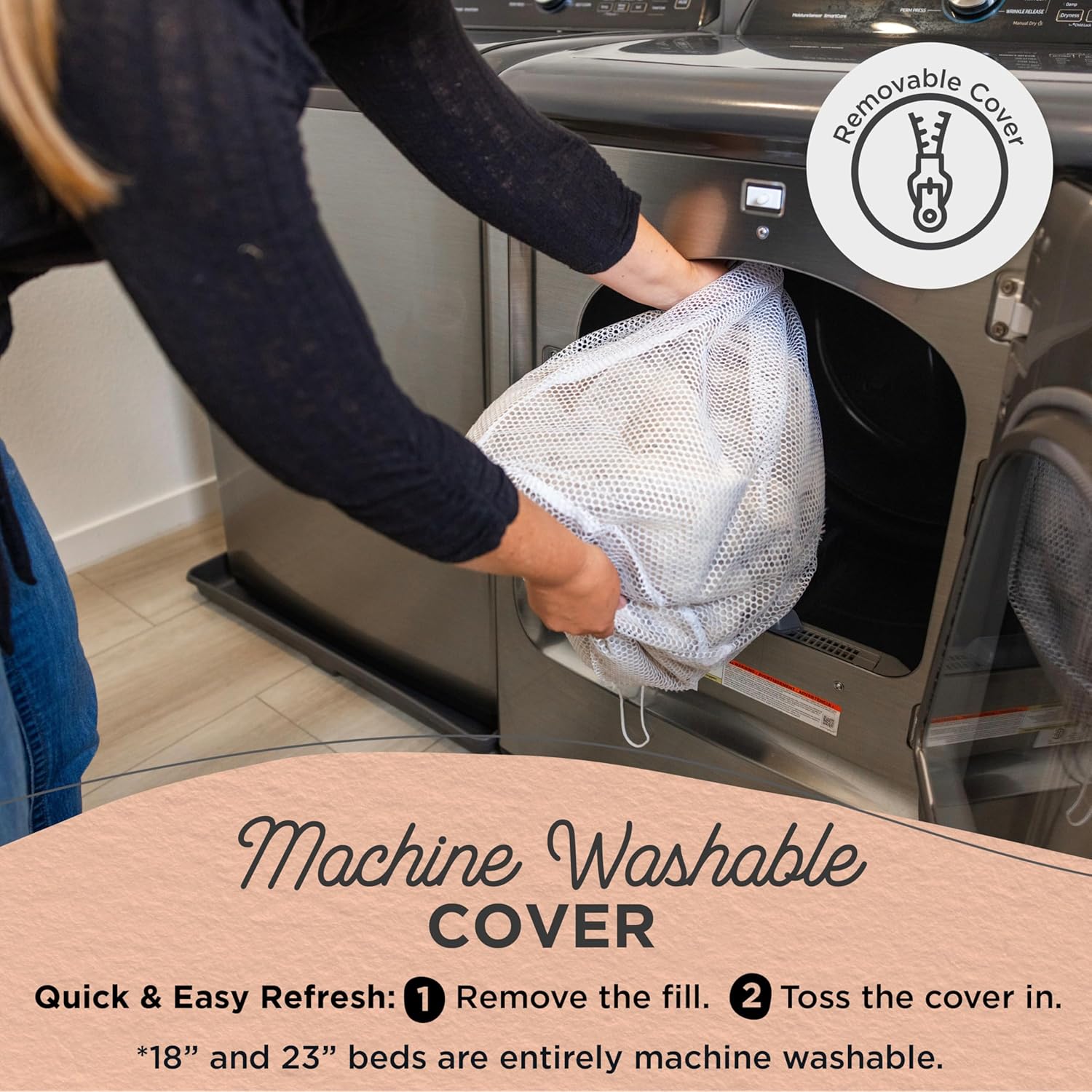 Machine washable – the 18″ and 23″ beds are entirely machine washable; 30″, 36″, 45″, and 54″ beds feature a removable cover that is machine washable; please see our pro tips and special care instructions for more details