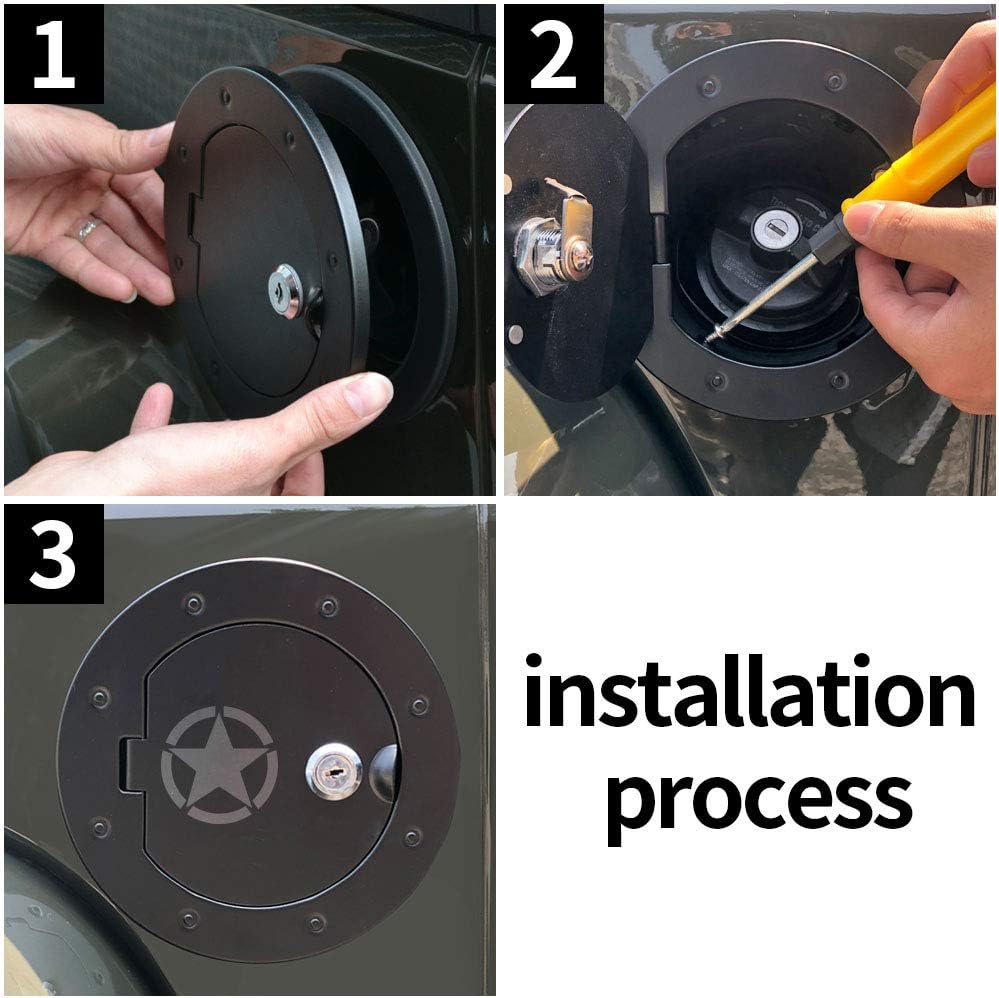 10 reviews for BESTAOO Aluminium Fuel Filler Door Cover for 2007-2017 Jeep Wrangler JK & Unlimited Sport Rubicon Sahara, Locking Gas Tank Cap Cover for 5th Wheel Toy Hauler Fuel Station – Star
