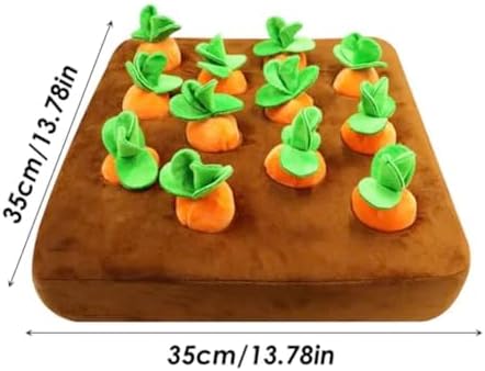 Great & fun treat seeking adventure for your beloved furry ones! This is a hide & seek design, which helps dogs & cats stay entertained for extended periods. Features soft & plush constructions, crafted from gentle & resilient materials. Comes with 12 individual small carrots & a base, where you can hide your favorite treats into the holes and cover up with the carrots! How to play? – 12 individual carrots! Throw like a ball, chew like a little toy! You name it! – Hide treats into the holes in the base, up to 12 holes to hide them! Simply plug the carrots into the holes, let your pup sniff, seek, pull & eat! Hours of fun! – Supports for multi-pup mode! Gather friends to seek treats together, this base is big enough so 2-3 dogs or cats can enjoy the fun together! This plush carrot toy is ideal for both cuddling and playtime. Mind-Stimulating Enrichment Toy: Specifically created as a puzzle toy, it aims to challenge your dog’s intellect and encourage mental stimulation. Cheerful Carrot Design The adorable and vibrant carrot design is guaranteed to captivate your dog’s interest.
