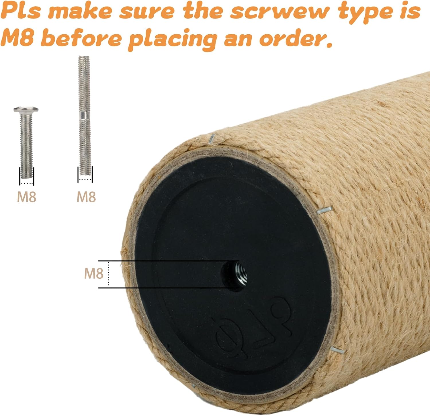 Good Value: You will receive 4 tall cat scratching post replacement with M8 screws, suitable for most cat tree tower. The scratching post replacement size is around 3.8″Wx15.7″H, Compatible for all size cats. And please confirm the dimension of the cat scratch post replacement and whether the screw type is M8 before placing an order.