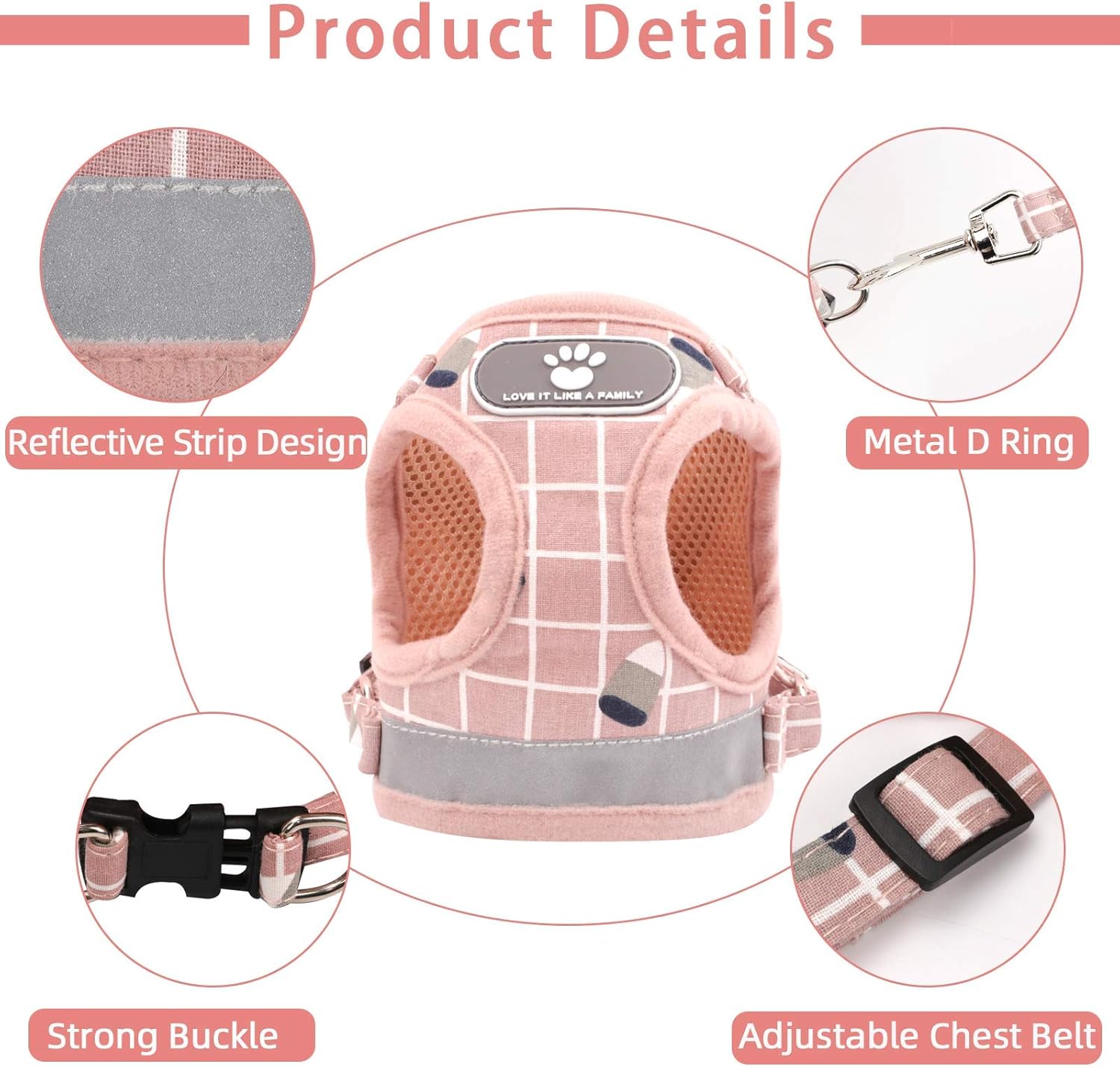 Cat Vest Harness and Small Dog Vest Harness for Walking, All Weather Mesh Harness, Cat Vest Harness with Reflective Strap, Step in Adjustable Harness for Small Cats (Pink-Pattern)
