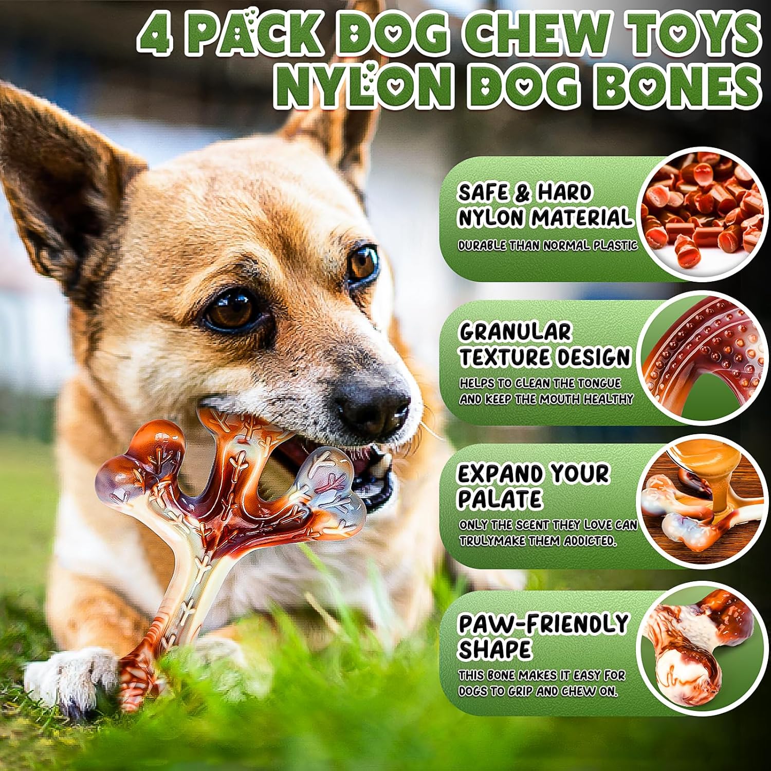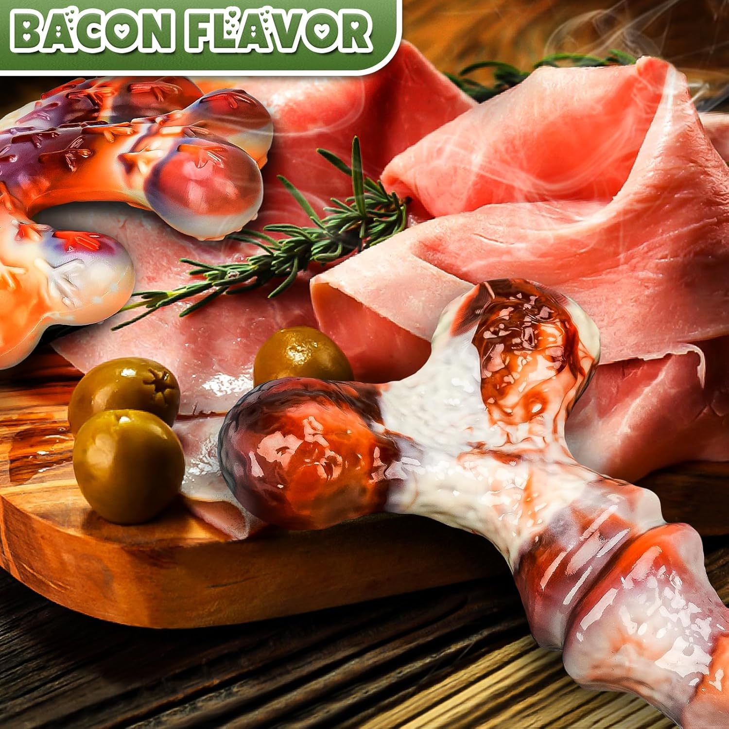 DBF 4 Pack Indestructible Dog Chew Toys for Aggressive Chewers Medium Small Breed – Durable Tough Dog Toy with Bacon Flavor, Heavy Duty Hard Nylon Dog Chew Bones for Large Dog Teething Cleaning