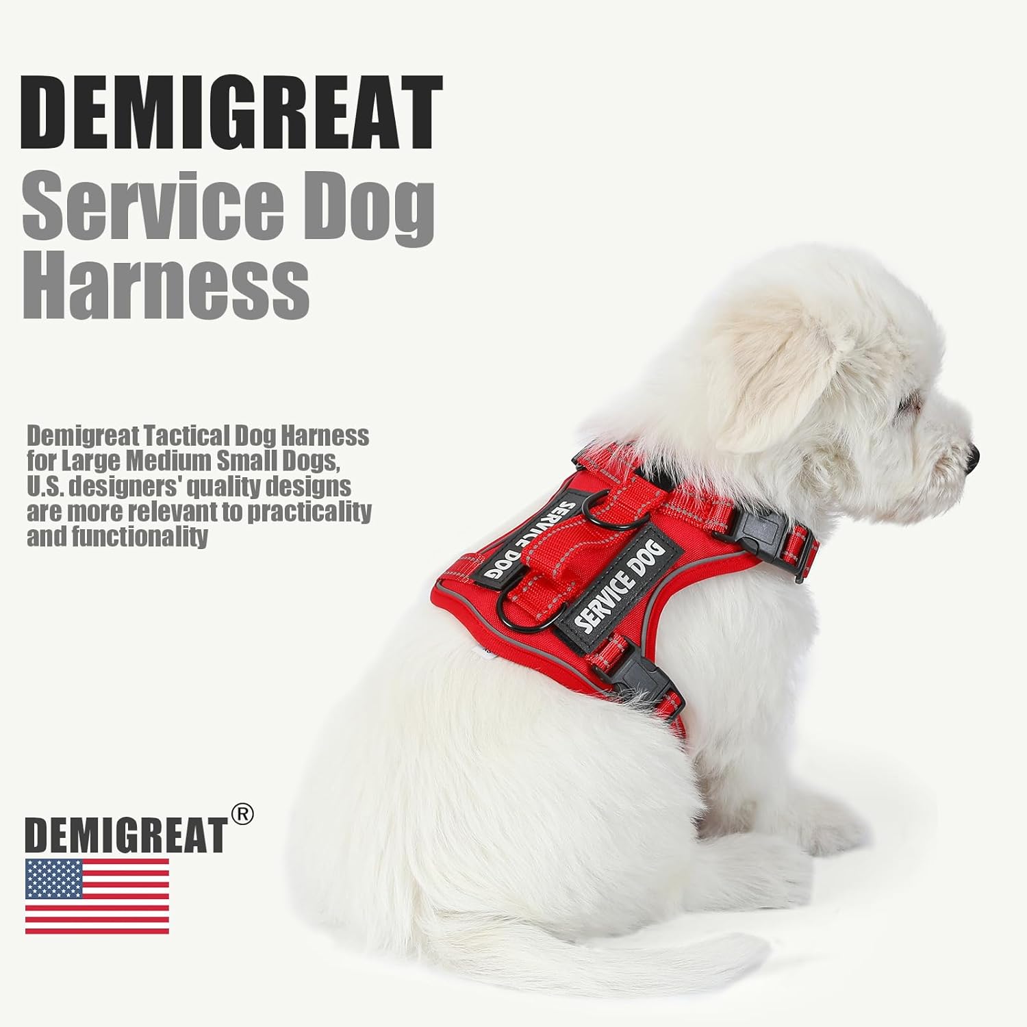 Demigreat Service Dog Harness, Reflective Dog Vest Harness with 5 PCS Patches, Adjustable Soft Oxford Pet Harness, Inner Layer Mesh, Easy to Control for Dogs (All-RED, Small (Pack of 1))