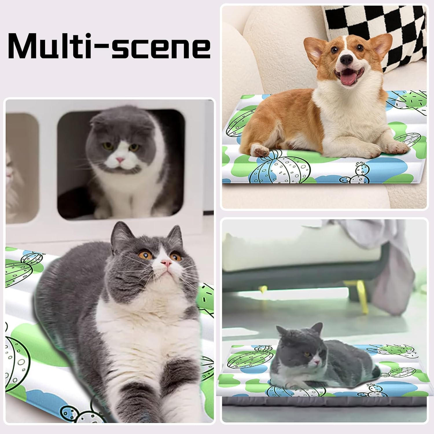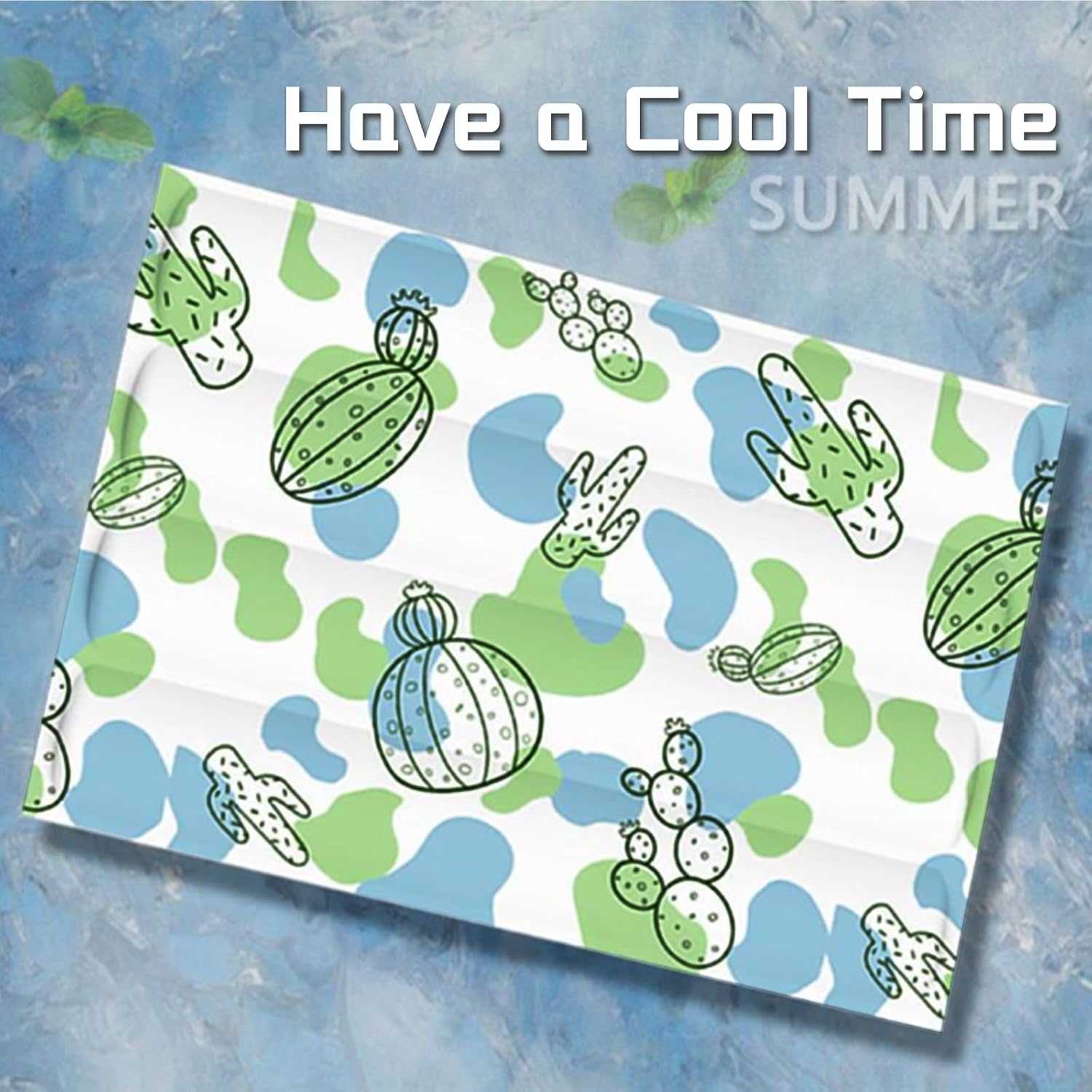 Dog Cooling Mat, Double Ice Gel Cooling Mat for Dogs with Cactus Patterns, Green Cooling Pad for Dog and Cats Washable, Durable (XL-35.4” x 23.6”)