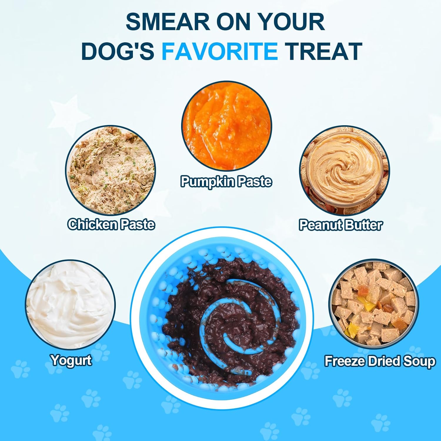 SUITABLE FOR A VARIETY OF FOODS: you can apply cream cheese sauce, peanut butter, pumpkin butter, frozen bone broth, sardines, berries, etc. in the dog lick bowl, and then put the dog lick bowl in the freezer to become freezebone dog enrichment, which can increase the time of the dog’s eating, and promote the dog to lick the secretion of more This will increase your dog’s eating time and encourage your dog to produce more saliva during licking to protect your dog’s oral health
