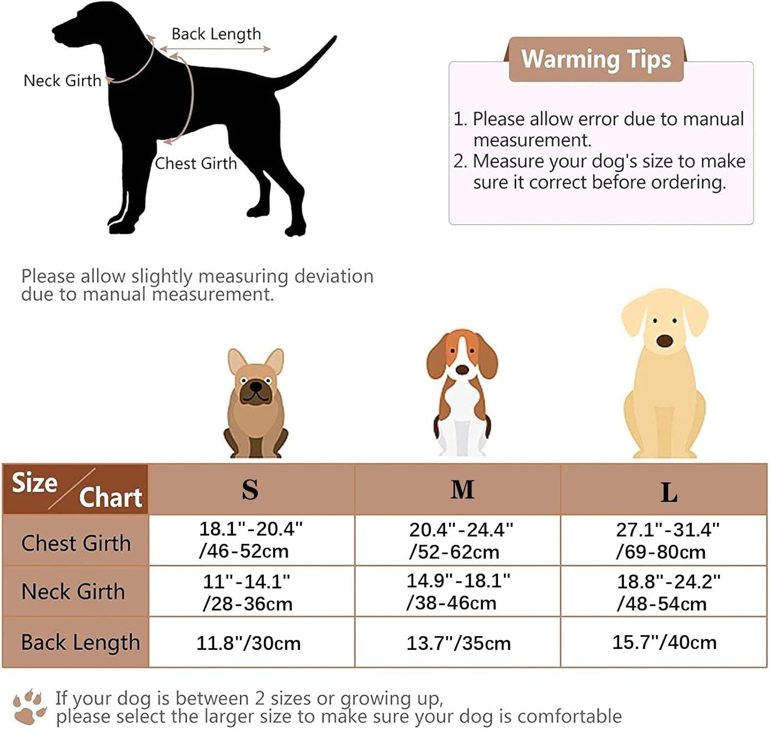 MEASURE BEFORE BUYING: Before choosing a size, measure your dog’s ribcage at the deepest point; don’t judge your dog’s size by weight or other brands’ criteria; if your dog is between sizes, Please choose one size larger for a more comfortable fit