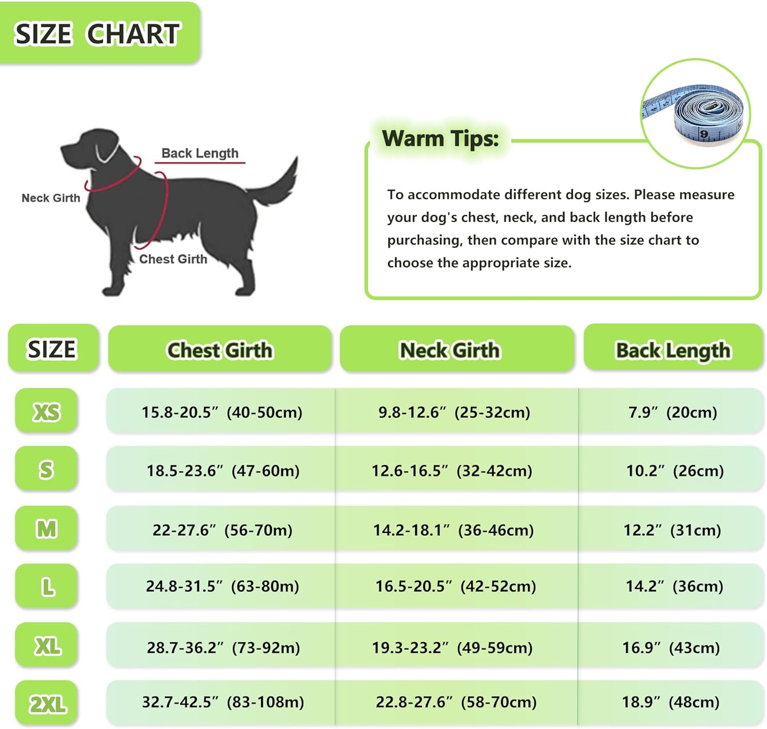 🔔【Measure Before Purchase】To accommodate different dog sizes, the life jacket is available in 6 different sizes. Please measure your dog’s chest, neck, and back length before purchasing, then compare with the size chart to choose the appropriate size.
