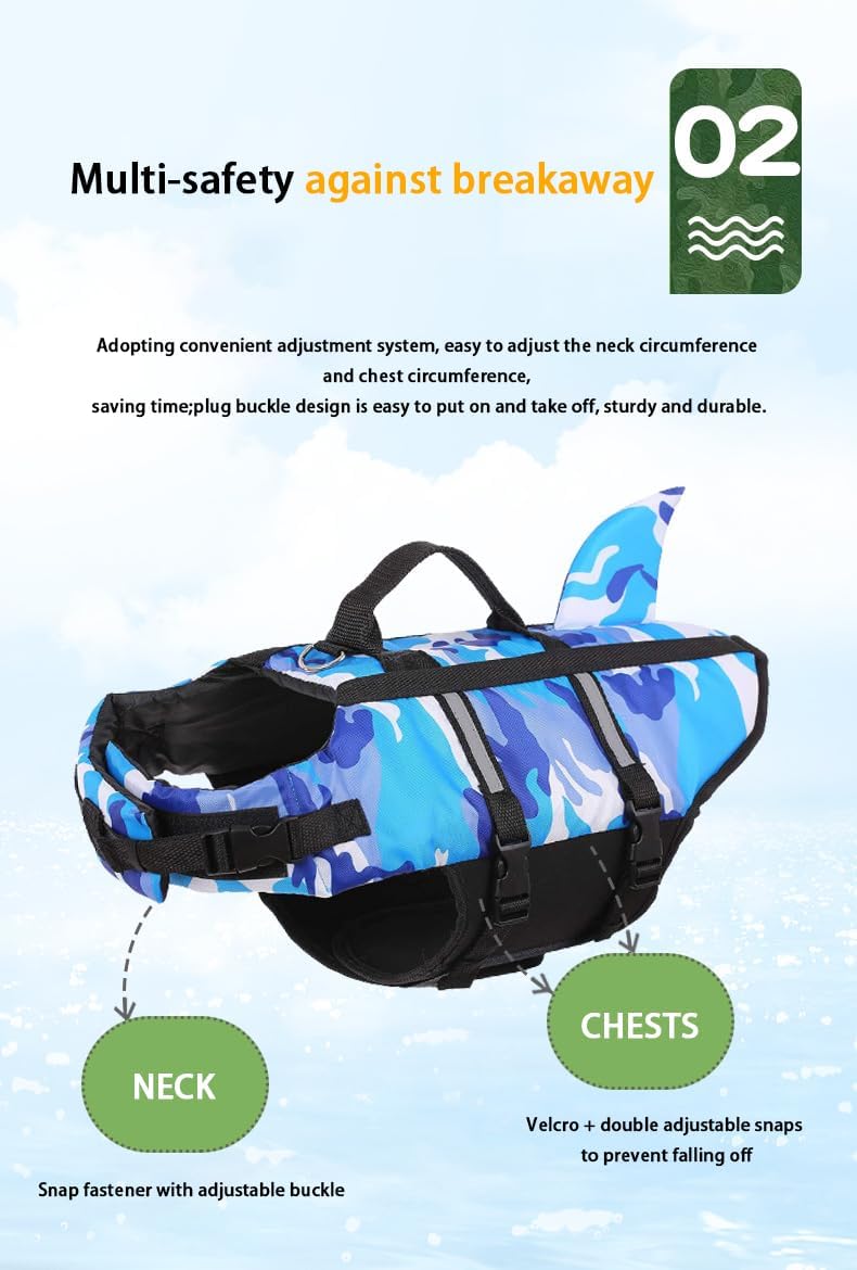 Summary: PEIFUKO Shark Dog Life Jacket is specially designed for dogs, with unique and cute shark fin design, super buoyancy, easy rescue, comfortable to wear, suitable for all kinds of pool activities. Choose PEIFUKO Shark Dog Life Jacket and let your dog swim in the pool without any obstacles and enjoy a carefree and happy time. Get your dog a PEIFUKO Shark Dog Life Jacket now! Let it become a beautiful scenery in your home and enjoy the fun of pool activities together!