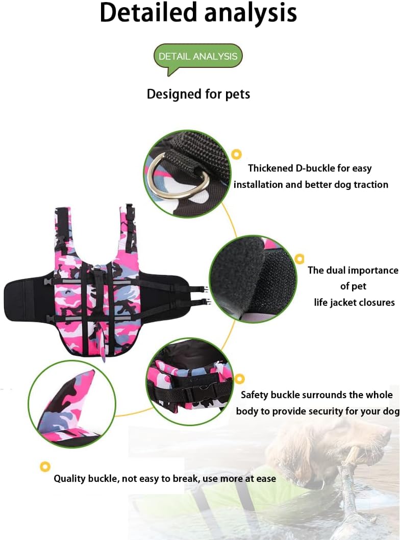 🦈【Easy Rescue】Life jackets for dogs feature a sturdy rescue handles that make it easy to restrain and lift your dog out of the water and help if there is ever a “dog overboard” situation. Besides, it also also simplifies teaching novice dogs to swim. you can hold the handle and guide them in the water until they gain confidence swimming independently.