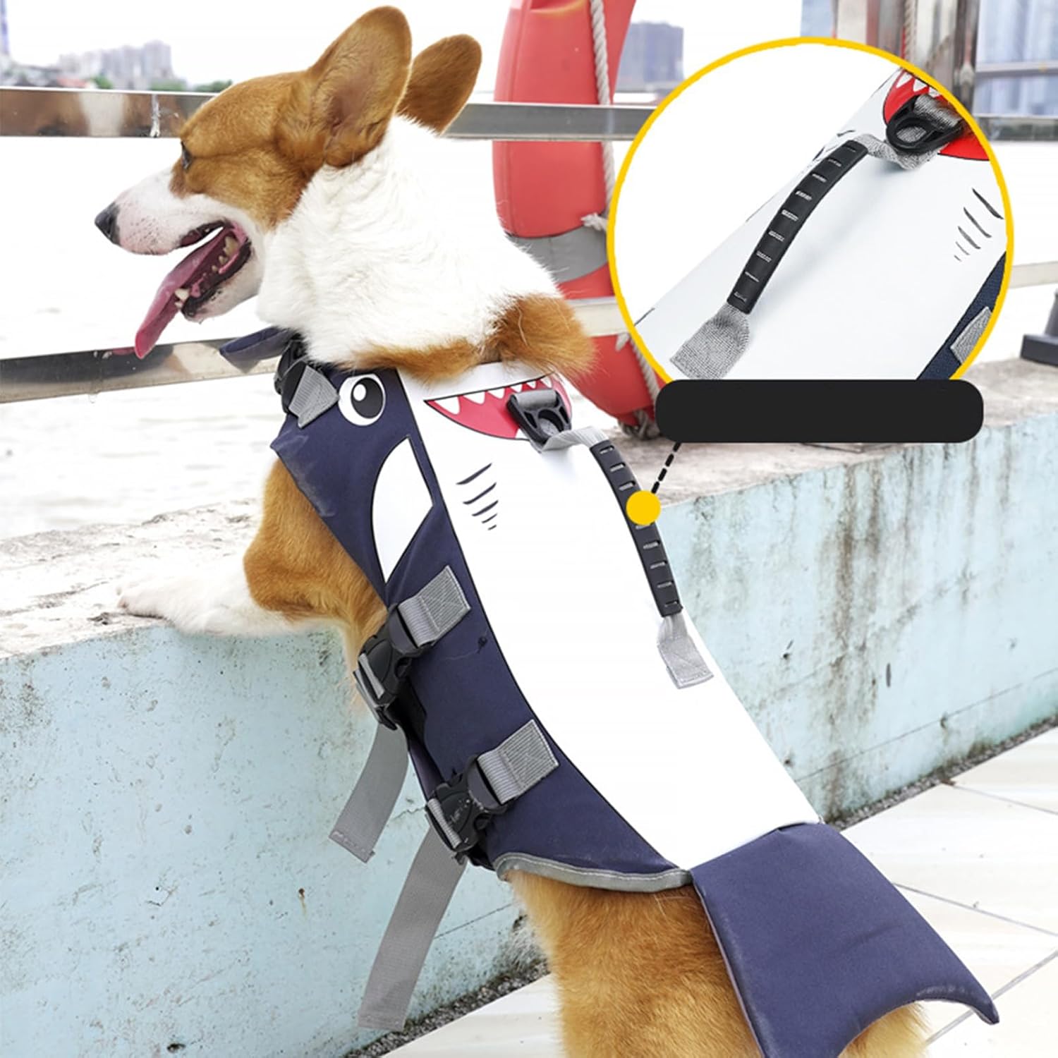Description: Ensure your pet’s safety and enjoyment with this stylish and functional dog life vest. Designed to provide buoyancy, it supports your dog during summer swimming or water activities, offering peace of mind. Featuring a unique sea animal design, this life jacket not only serves a practical purpose but also makes your dog stand out in the water. The vest is made from soft, breathable material that keeps your dog cool and comfortable throughout their time in the water. With multiple adjustable buckle straps, it fits various sizes of small and medium dogs, ensuring a secure and comfortable fit. Versatile in use, this life jacket is great for swimming, boat rides, beach outings, or lake adventures, making water fun safe for your furry friend.