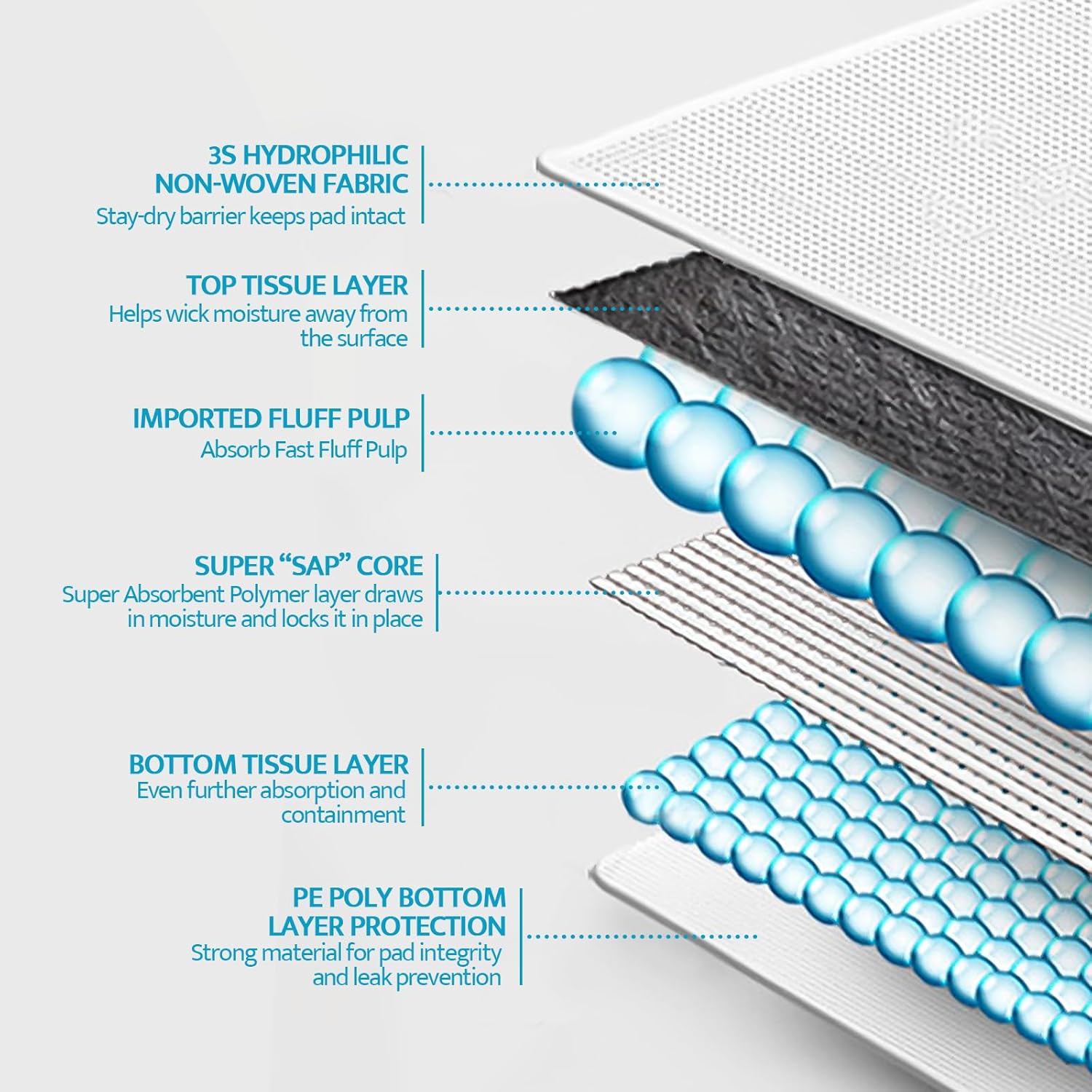 🐕【Superior Absorption & Quick Drying】Bella Gallery’s 6-layer design and premium perforated film top layer ensure rapid liquid absorption and quick surface drying, offering comfort and preventing puddling or tracking.