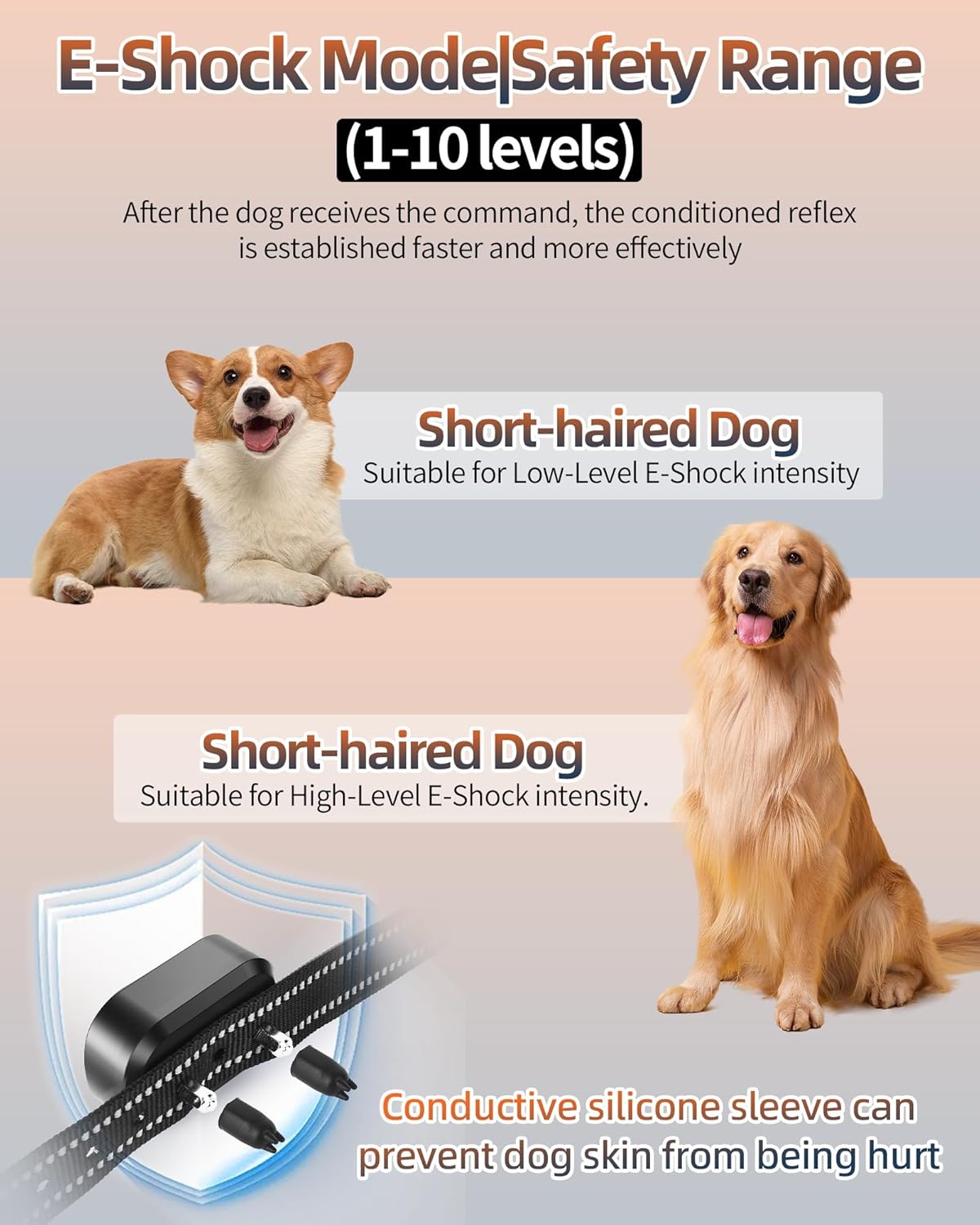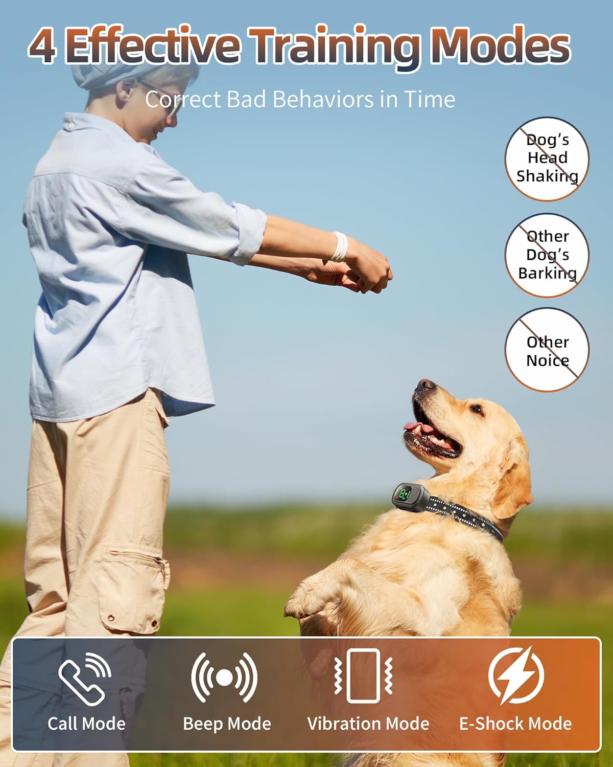 【4 Safe and Effective Training Modes】The dog shock collar has 4 humanized training modes: voice call, beep, vibration, and safe electric shock. Enables you to set the right stimulation level for your pet, which helps stop the dog from stopping bad behaviors and forming good habits. The sensitivity is adjustable in 10 levels and can be slightly adjusted according to your dog.