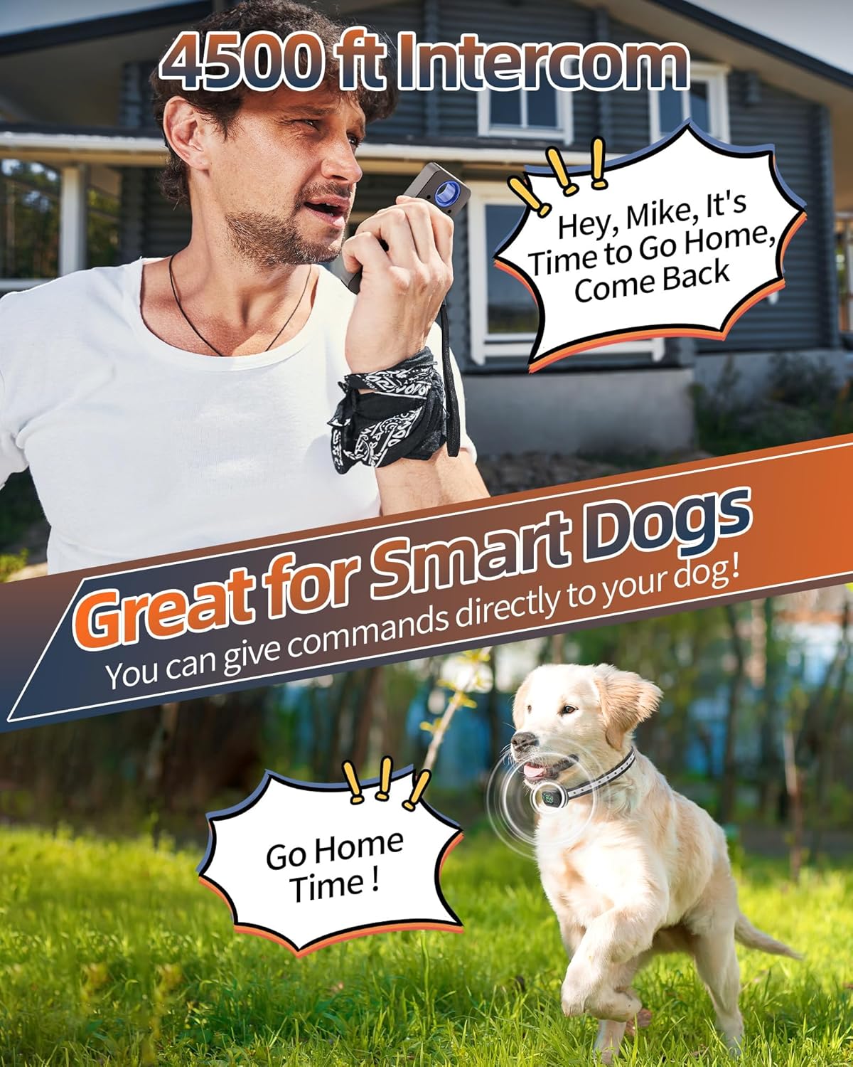【4500FT Remote Control & Call Function】Our dog collar has specially developed a new call mode, so that your dog can immediately stop destructive behavior or return in time when hearing your voice from a long distance. Very useful for your smart and well-trained dog at home. The remote control range can reach up to 4500 feet, allowing you to easily train your dog indoors or outdoors.