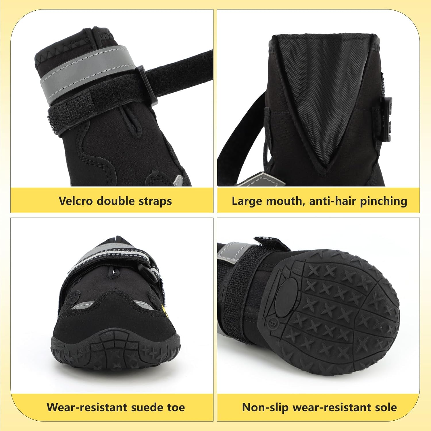 [360°ANTI-SLIP BOOTS] – The 360° anti-slip design of the shoe opening prevents the dog shoes from slipping off your dog’s feet. The dog boots are very soft for dog’s paws and durable for dog.