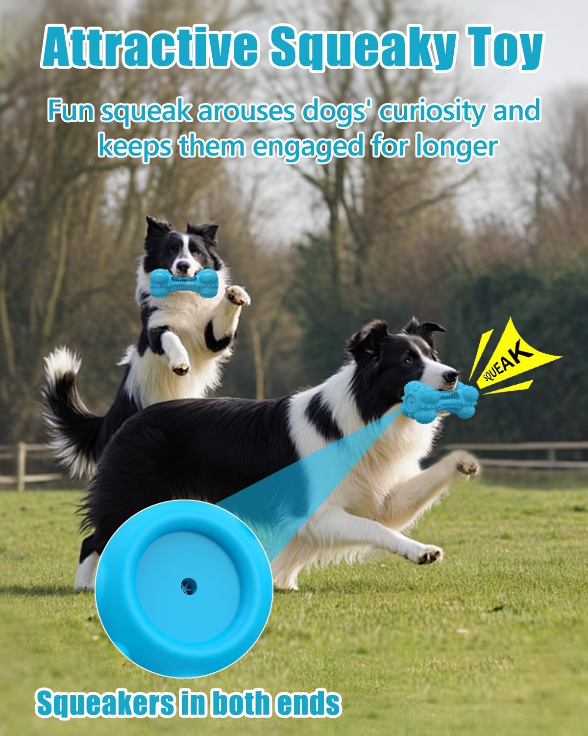 Funny Squeaky Dog Toy: This tough pet toy features squeakers in both ends. When dogs chew it, it will make a “beep” sound to arouse more interest, keep them engaged and extend playtime.