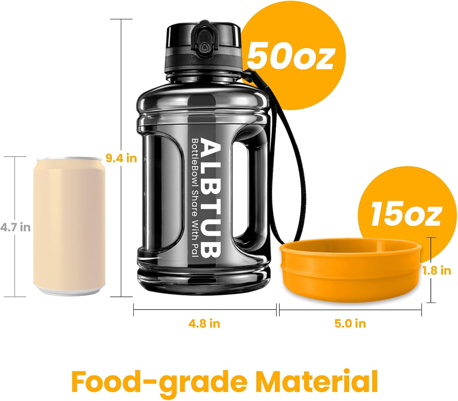 I really like the little water bowl that comes with this 50oz jug. Fits perfectly in the bottom, and you can loop a strap around the handle so the jug doesn’t have to be carried around.