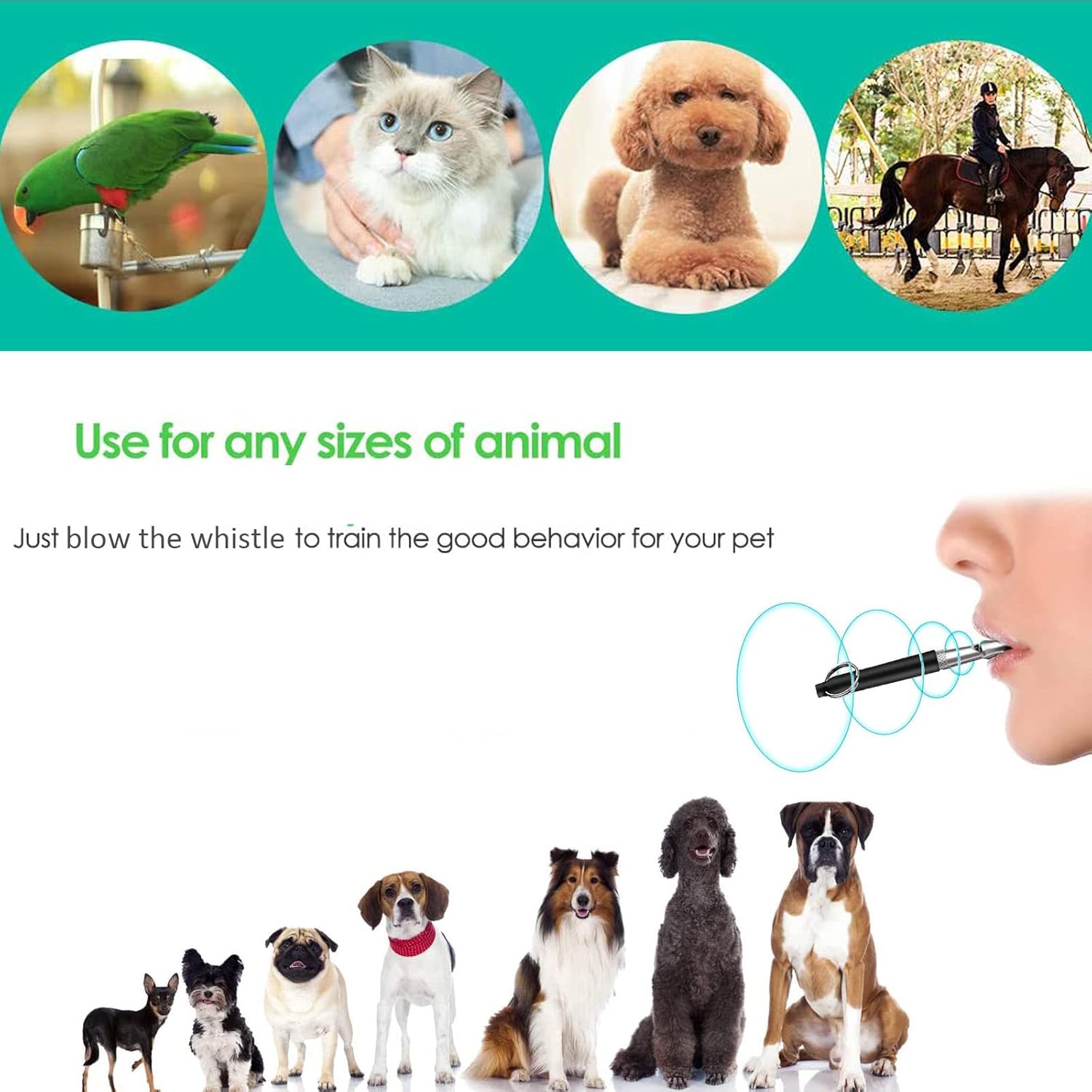 【STOP DOG BARKING】: When your dog or neighbor’s dog keeps barking, gently blow the dog whistle, the ultrasonic frequency emitted by the dog whistle can easily attract the dog’s attention and stop barking