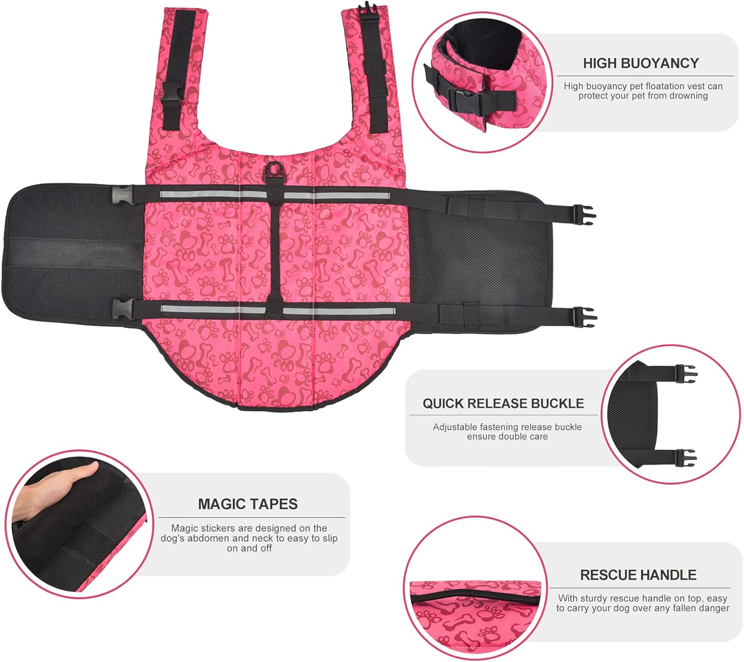 Dogcheer Dog Life Jacket, Ripstop Dog Life Vest with Reflective Stripes, Adjustable Puppy Life Jacket for Swimming High Buoyancy Dog Swim Flotation Vest for Small Medium Large Dogs(Pink Bone-XXS)