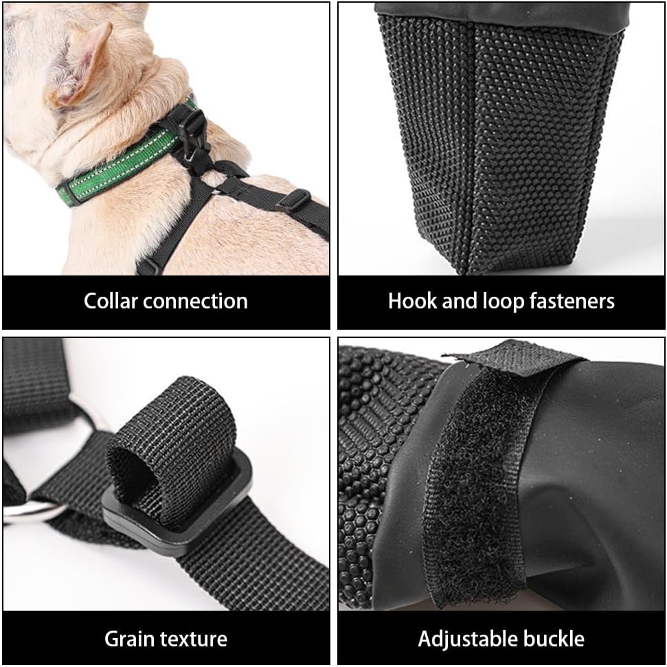 This dog shoes with adjustable buckle, legs can be self-adhesive fixed, applicable to a variety of dog body type, can be connected with the dog collar, practicality is very strong.