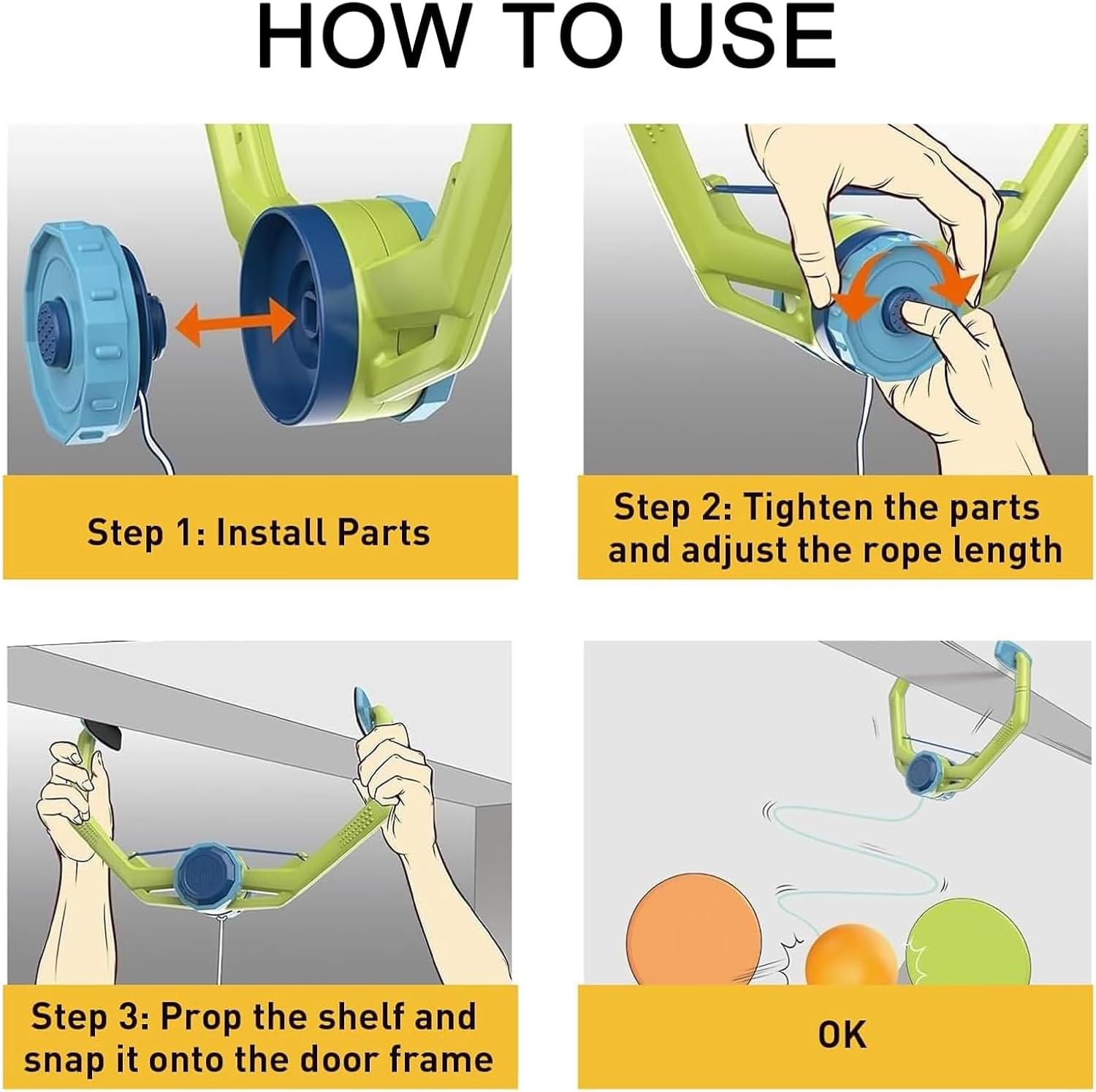 【Easy Installation and Setup】: Setting up the Door Frame Interaction Toy is a breeze. Simply clip it onto any stable door frame, adjust the rope to the desired length, and you’re ready to play. This Doorway Ping Pong Game easy-to-install game setup requires no special table, making it perfect for spontaneous sessions