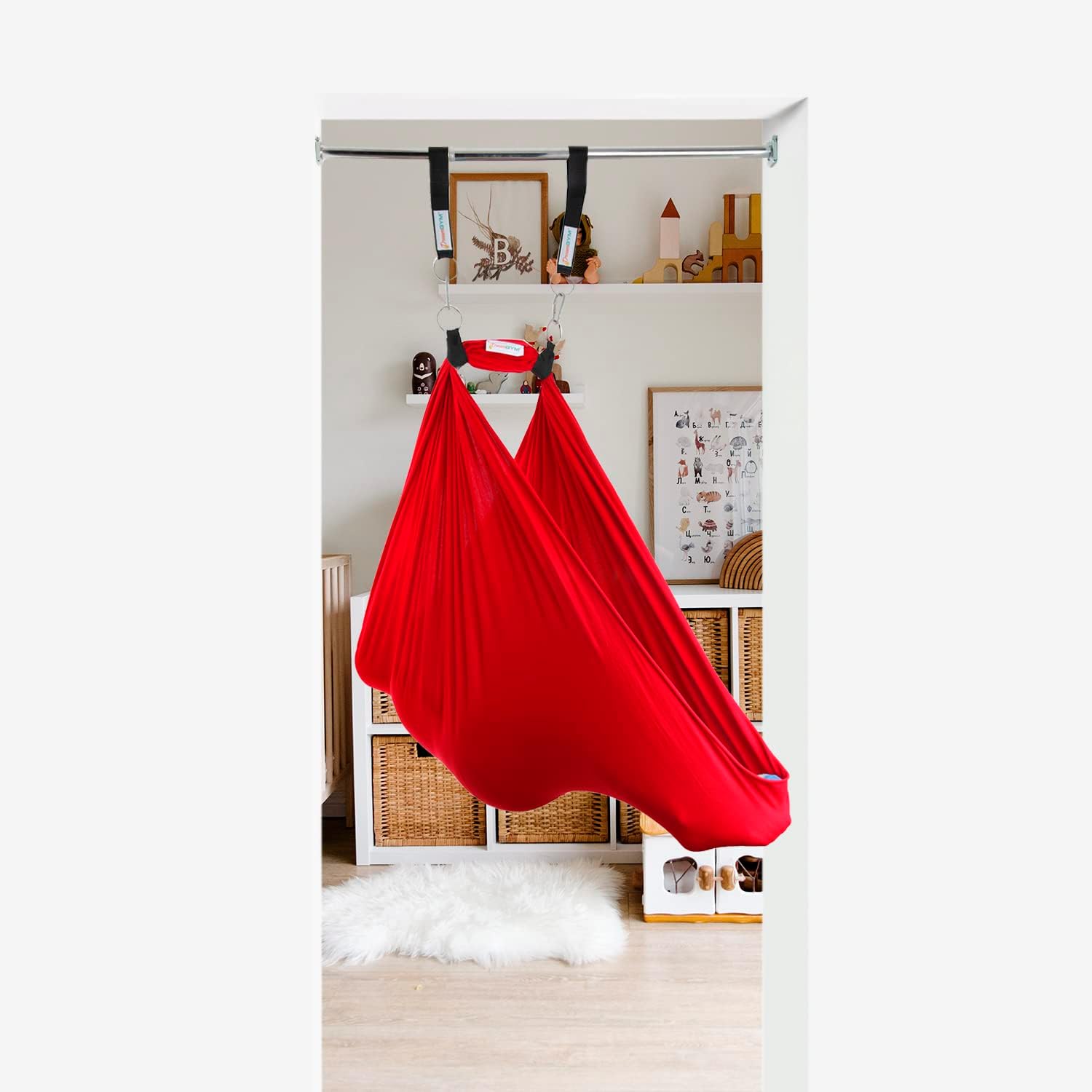 Womb like comfort: The Doorway Sensory Swing is a super easy way to provide children with deep pressure and vestibular therapy. Soft, stretchy material (95% cotton) cradles the child and creates a feeling of secure and gentle movement. Kids can kick back and let the swing do all of the work.