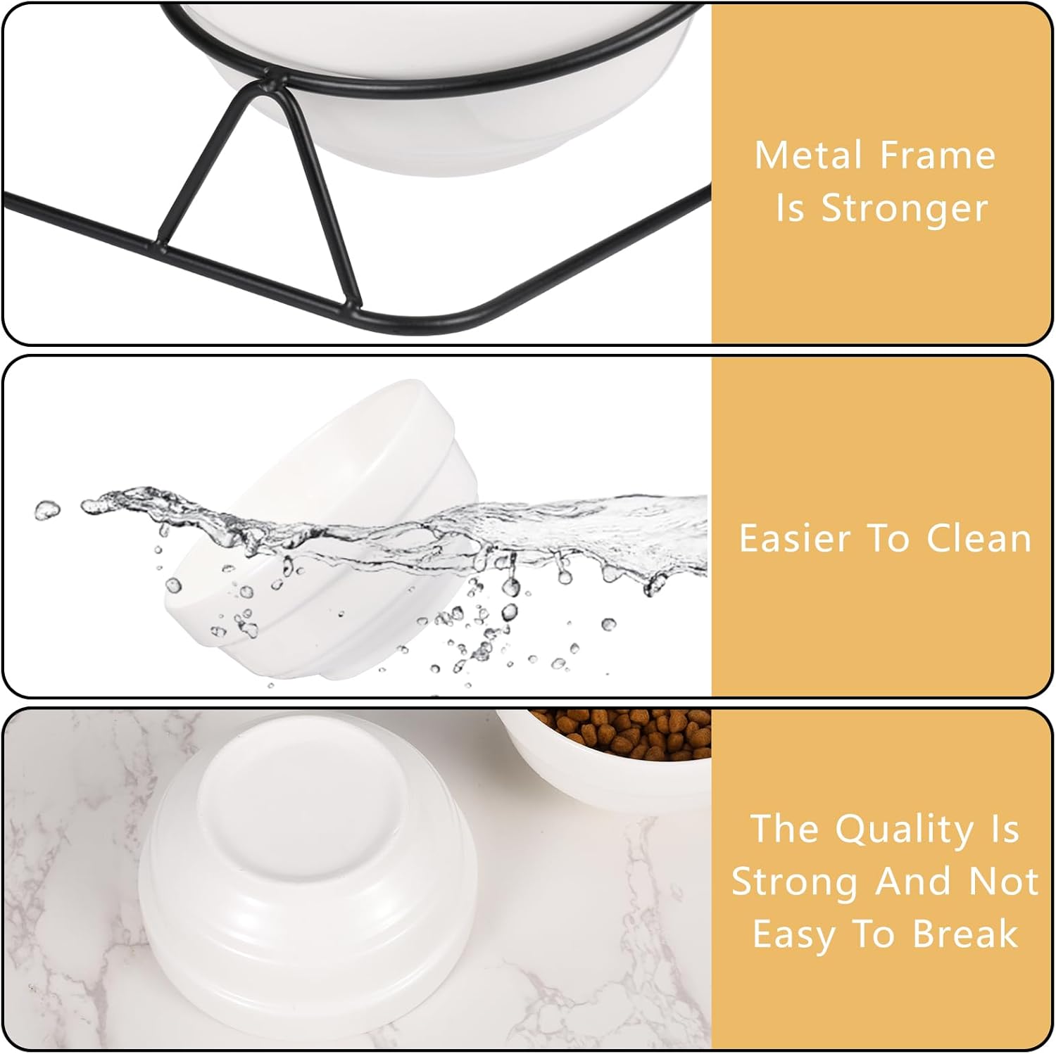 Clean Feeding Area: The bowl is elevated by a metal stand with stable rounded feet, keeping the pet bowl securely in place. This helps keep the feeding area tidy and free from scattered cat food.