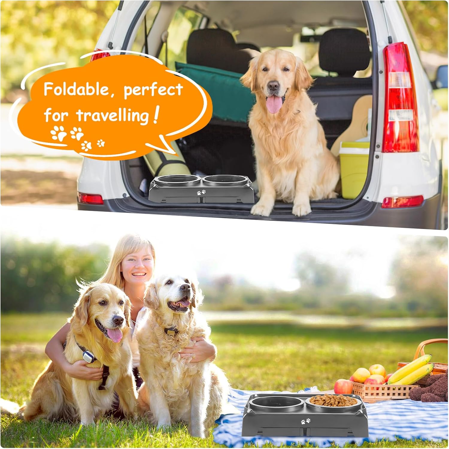 🐕Adjustable Height Dog Food Bowl Stand for Medium & Large Sized Dogs: Say goodbye to bending down! Our elevated dog bowls can be adjusted to 4 different heights: 3.7″, 9.2″, 10.75″, and 12.36″, accompany then from puppy to full grown. The raised dog bowls can not only makes it easier and comfortable for dogs to access their food and water, but also prevents dust or floor debris from falling into the bowls, ensuring a clean and healthy dining experience.