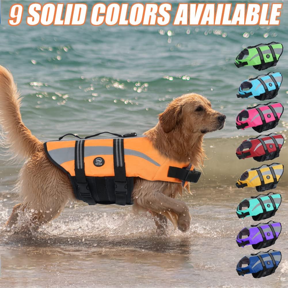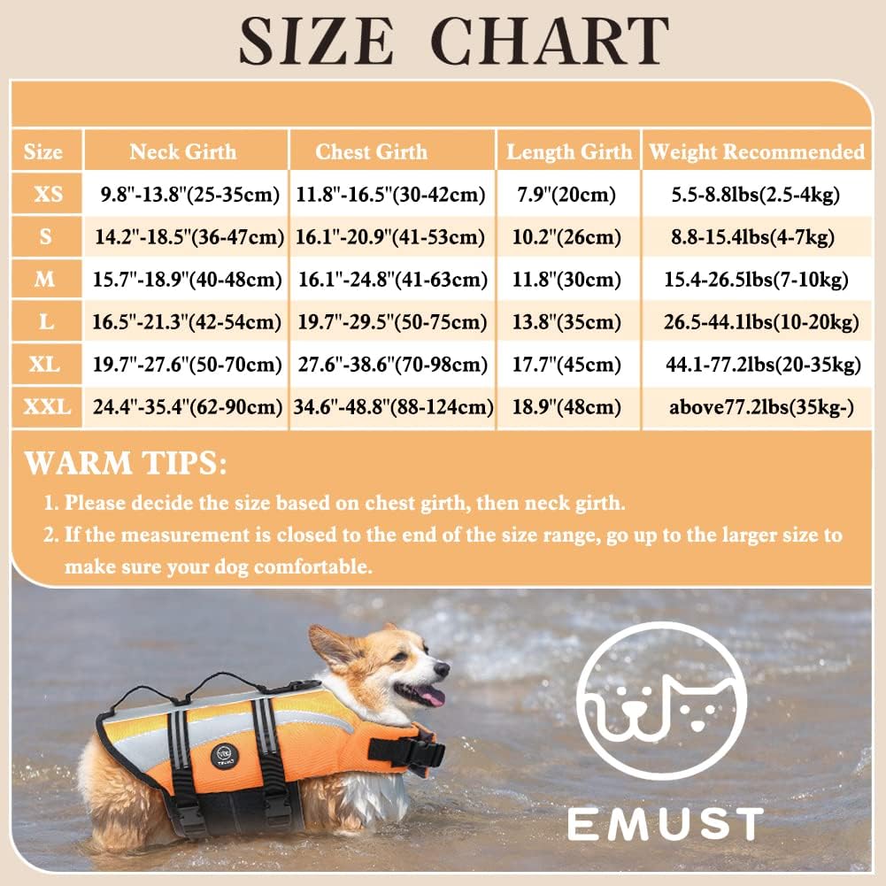 EMUST Life Jacket for Large Dogs, Dog Life Vest for Small/Medium/Large Dogs with Double Rescue Handles, High Reflective Dog Life Preserver for Swimming,Orange, L