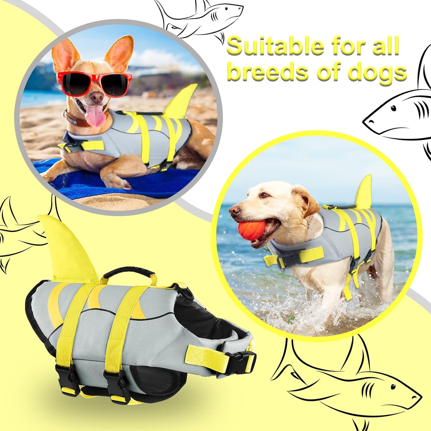 Fragralley Dog Life Jacket Shark, Dog Life Vest Adjustable Ripstop, Dog Swimming Safety Vest with Superior Buoyancy & Rescue Handle for Small Medium Large Dogs, Swim, Pool, Beach, Boating