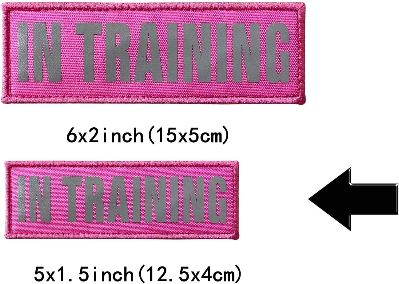 JUJUPUPS Pink Reflective Dog Patches 2 Pack Service Dog ,in Training, DO NOT PET, Tags with Hook and Loop Patches for Vests and Harnesses (Pink-in Training, 5×1.5 inch)