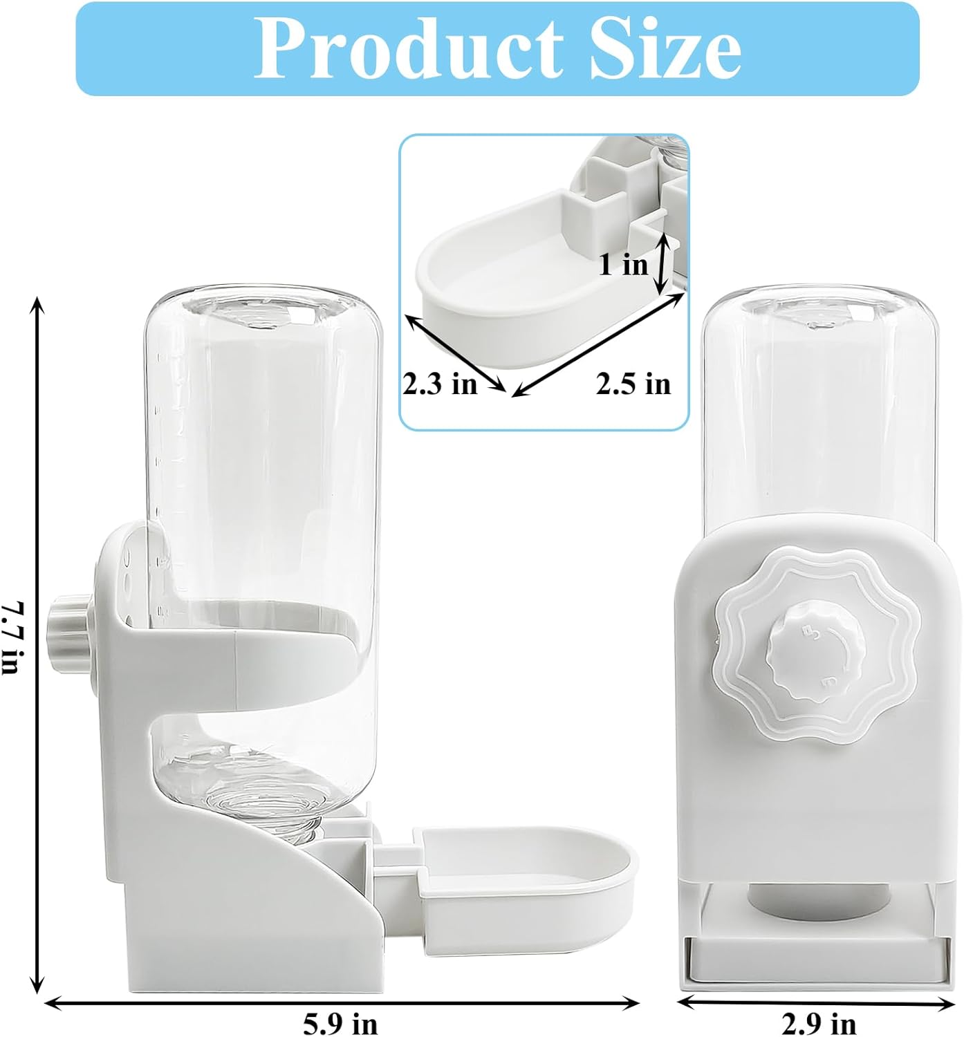[Size and Range] This hamster water bottle for cage (5.9 x 2.9 x 7.7 inches) is suitable for rabbit, rat, hamster, guinea pig, chinchilla, ferret, mice, squirrel and other small animals. This chinchilla water bottle no drip is necessary for those who are constantly on the go and worry about not having enough water for your little pet