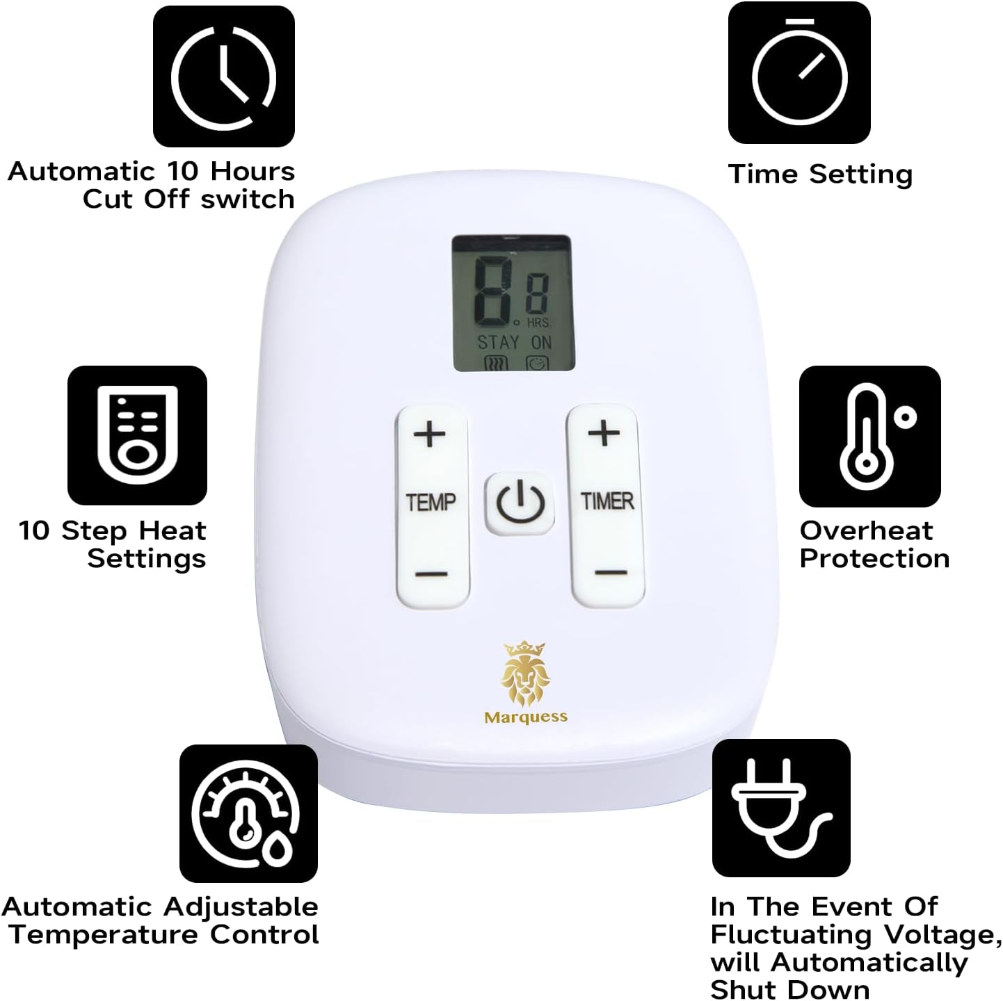 EASY SET- Power On/Off,10 temperature settings and auto-shut off features for one controller. The controller will automatically shut off 10 hours after the controller is turned on. This is designed to provide added safety and conserve energy.