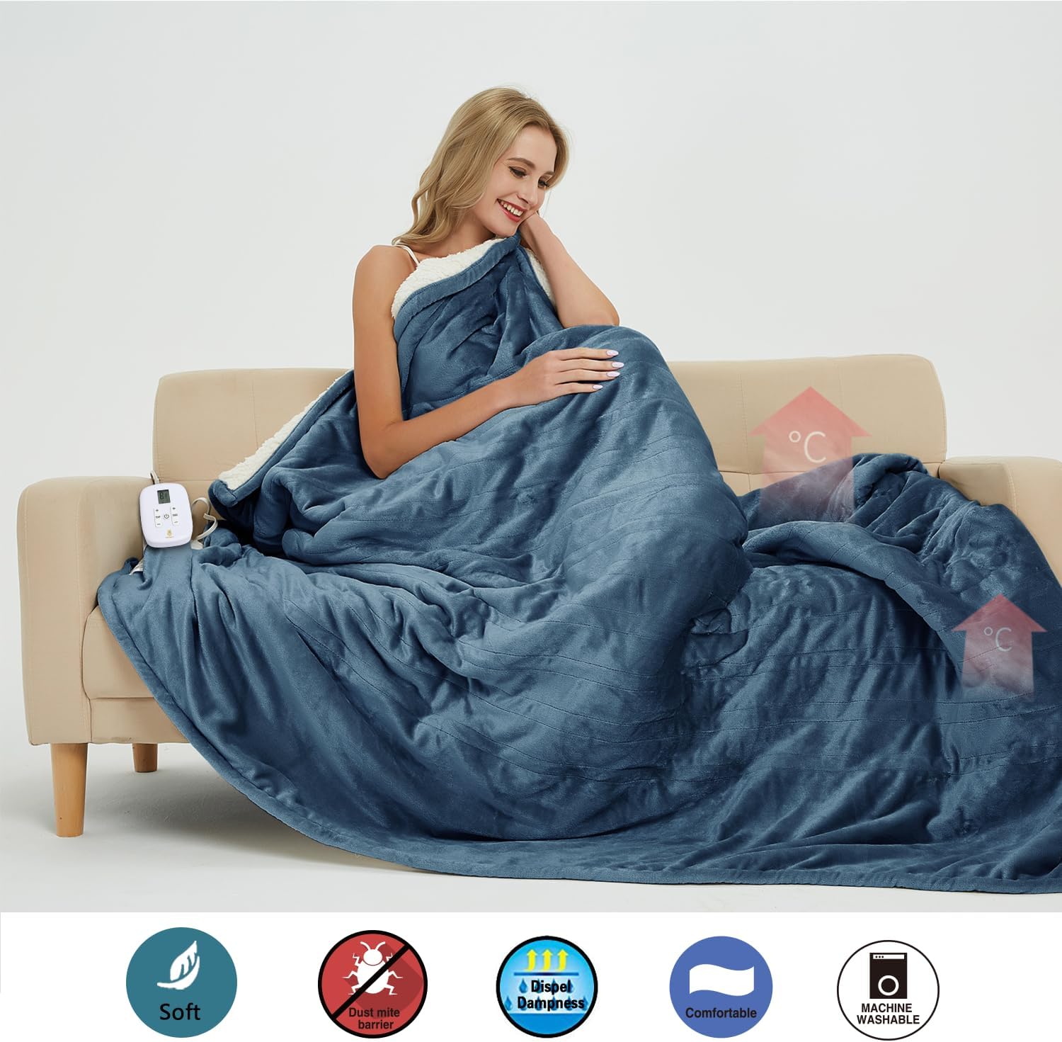 10 reviews for King Electric Blanket Washable with Dual Controllers, Heated Sherpa & Reversible Flannel Warm Blanket Throw, Oversized Fast Heating with 10 Settings/Safety 10 Hours Auto-Off(100X90” Navy Blue)