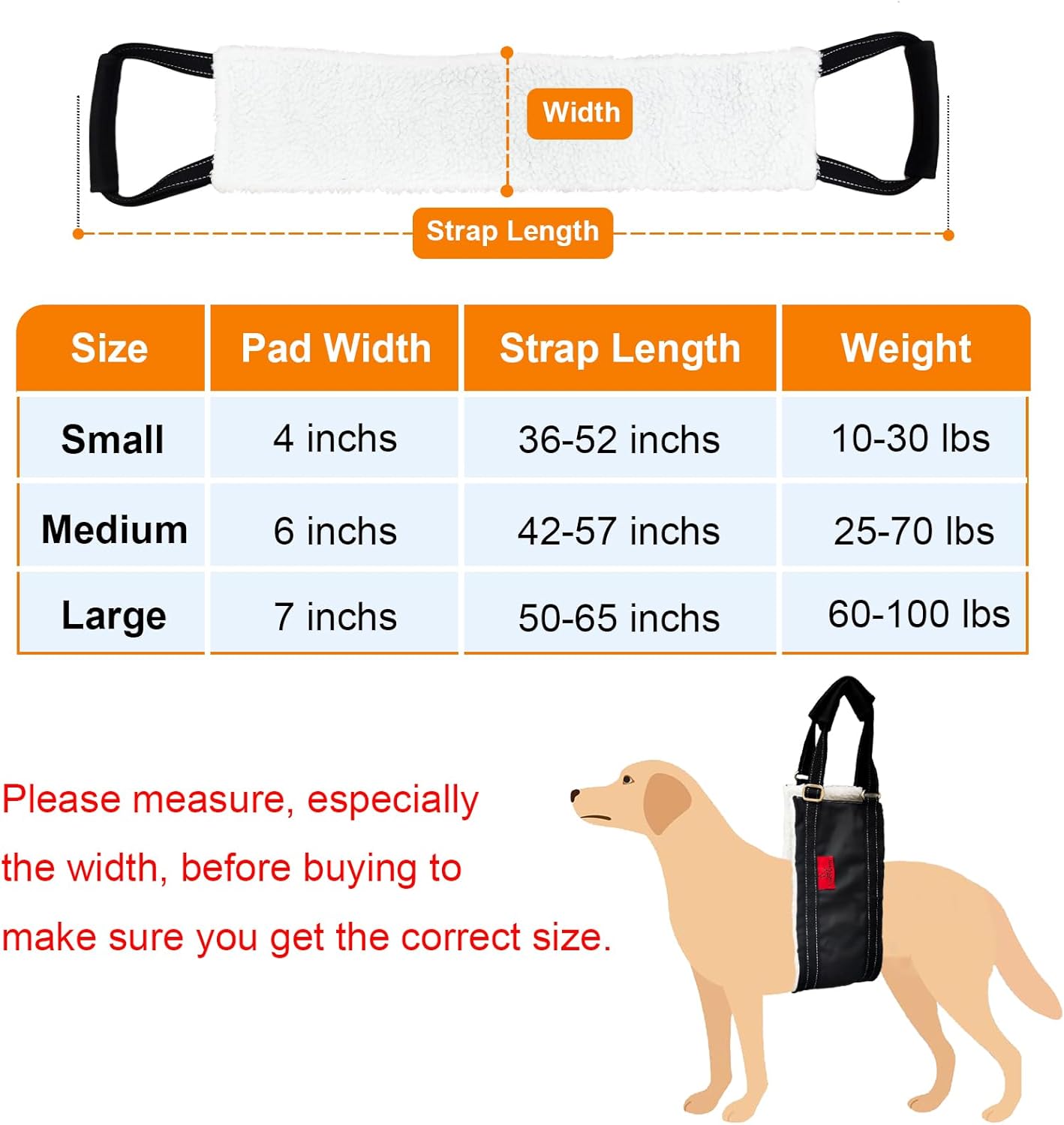 This wrap really helped my dog, she has hip issues, and getting in and out of car is really hard for her, this was very easy to use, very comfortable for my dog, it’s very strong my dog is a very big dog, the length is just right ,it has handled make it function easier to use, and also easy to adjust because of sturdy handles, works great