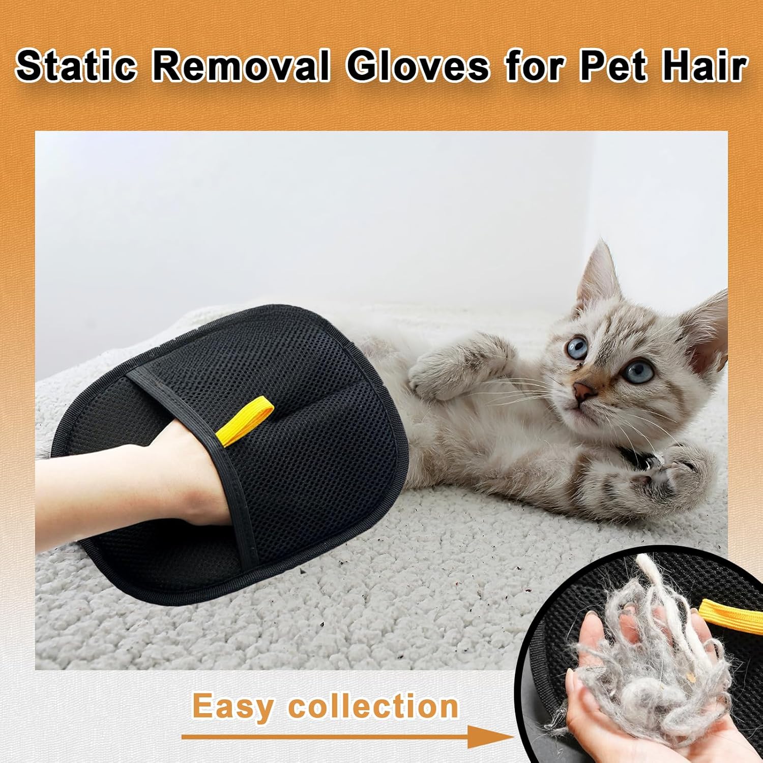 Transform your pet grooming routine with these innovative double-sided pet hair removal gloves. The mesh design effectively captures loose fur and dander while giving your furry friend a gentle massage. Perfect for both cats and dogs, these reusable grooming gloves feature a comfortable hand fit and convenient yellow pull tab. The static-attracting material helps collect pet hair efficiently from your pets’ coat, making grooming time a bonding experience rather than a chore. These versatile gloves work well for regular maintenance brushing and can be used wet or dry. The durable construction ensures long-lasting use, while the flexible material allows you to reach all those tricky spots. Keep your home cleaner and your pets happier with these practical grooming gloves that make collecting shed fur easier than ever. They’re especially useful during heavy shedding seasons and help maintain a cleaner living space by removing loose fur before it ends up on your furniture and floors.