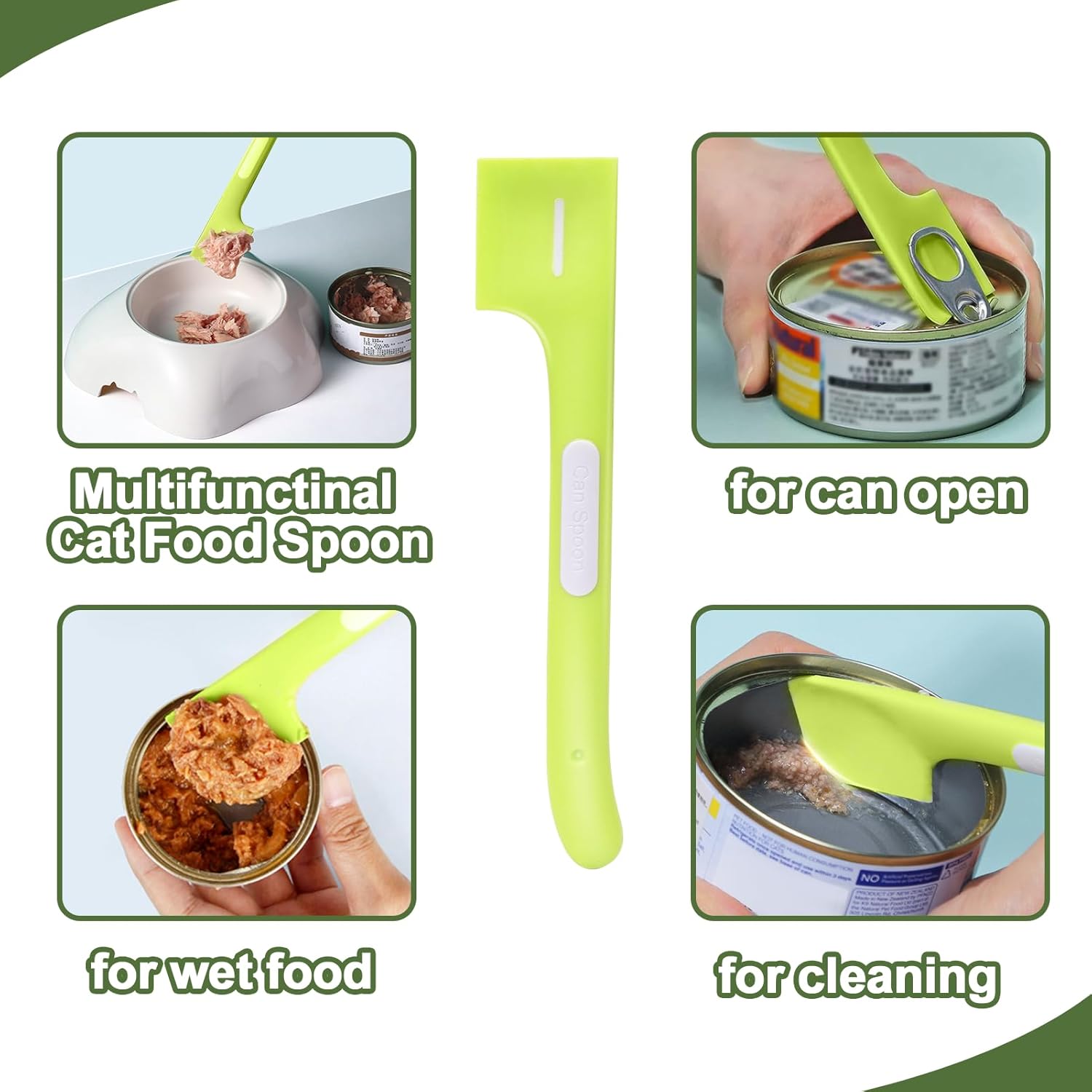 Premium Material: Made use of food grade plastic, ensure your cat every lick clean and healthy, sturdy and safe for your pets to use. The pet food can spoon is made of food grade silicone, hard enough to support kinds of use (can open, wet food feeding, leftovers cleaning)
