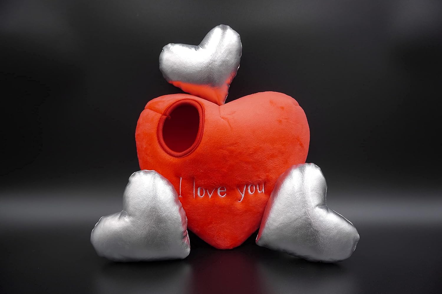 MODERN WAVE – Squeaky Plush Dog Toy – Interactive Hide and Seek Squirrel Type Puzzle Toy for Dogs, Small – Medium Size (Red Heart and Silver Hearts)