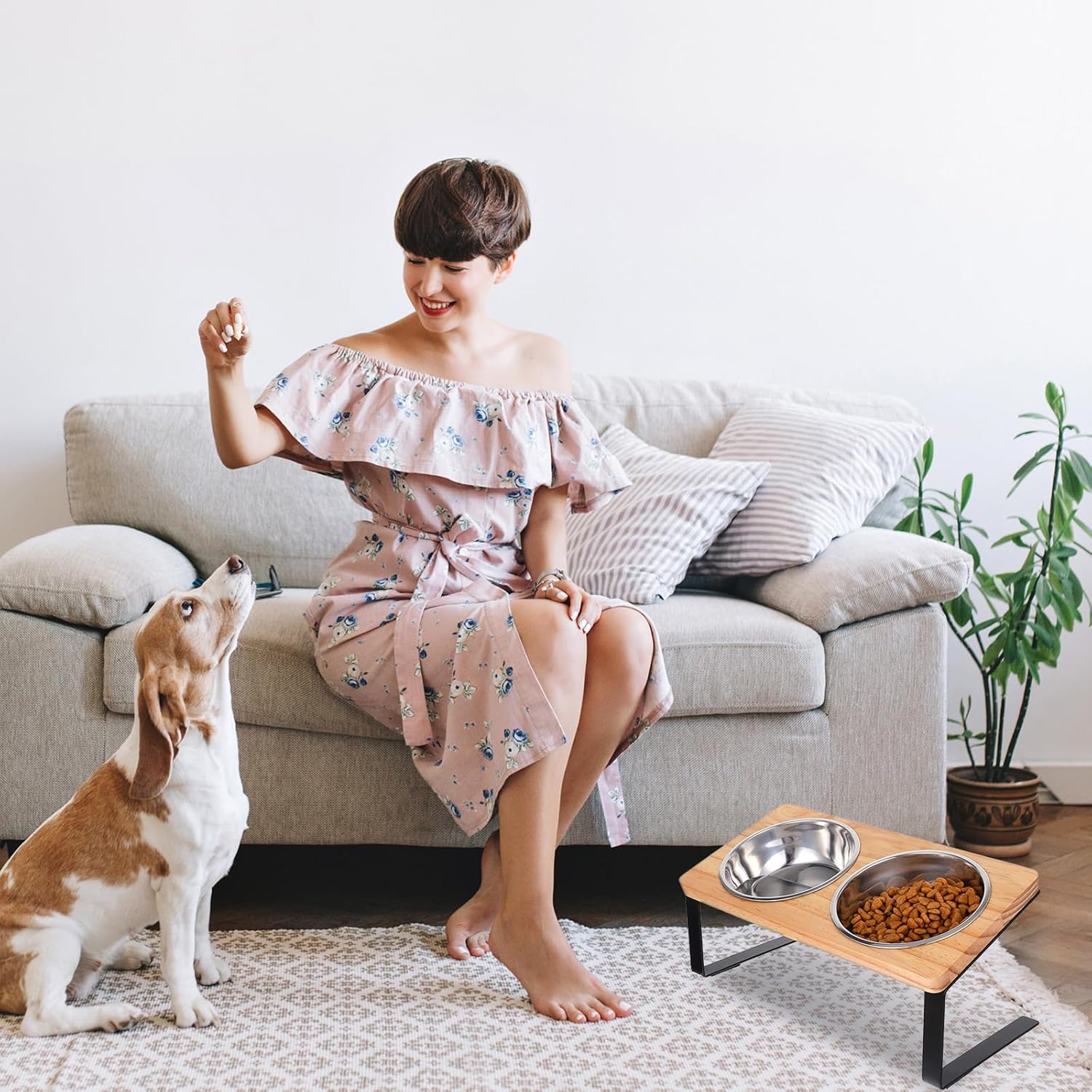 [Pet Safe Material] This elevated cat food and water bowl is made from food grade stainless steel, which is dishwasher safe, sturdy and rust resistant. The odourless wood stand has a smooth, burr-free surface that won’t hurt your pet, and the metal stand is strong and stable to avoid scratching the floor.