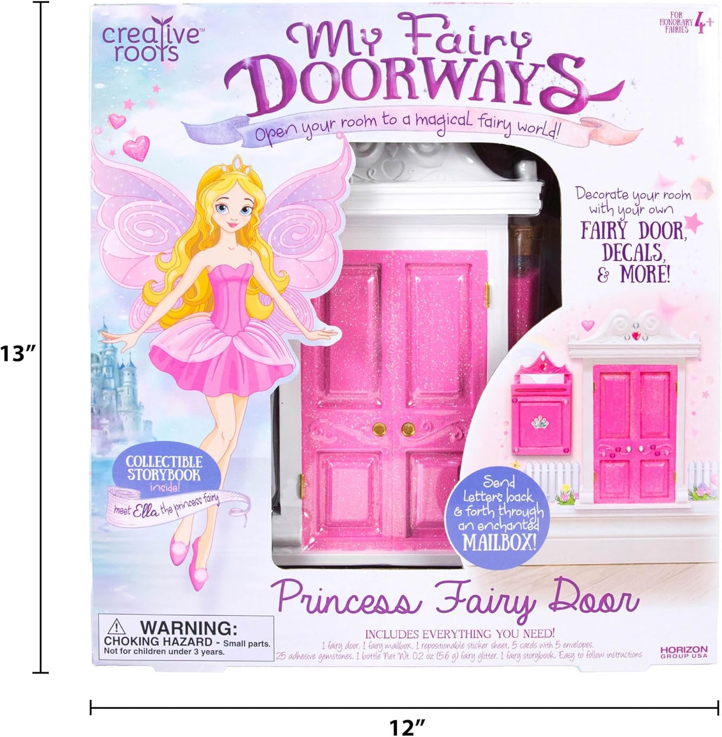 Jump into a magical world with the award-winning My fairy doorways Princess fairy door! Meet Ella the Princess fairy in the included collectable storybook and interact with your child’s imagination by sending letters through the enchanted mailbox! Decorate and personalize with fairy door with cute decals and Pixie dust. Your child will look forward to interacting with their magical fairy friend and it will make a beautiful memory and Keepsake! This kit is suggested for honorary fairies ages four and up.