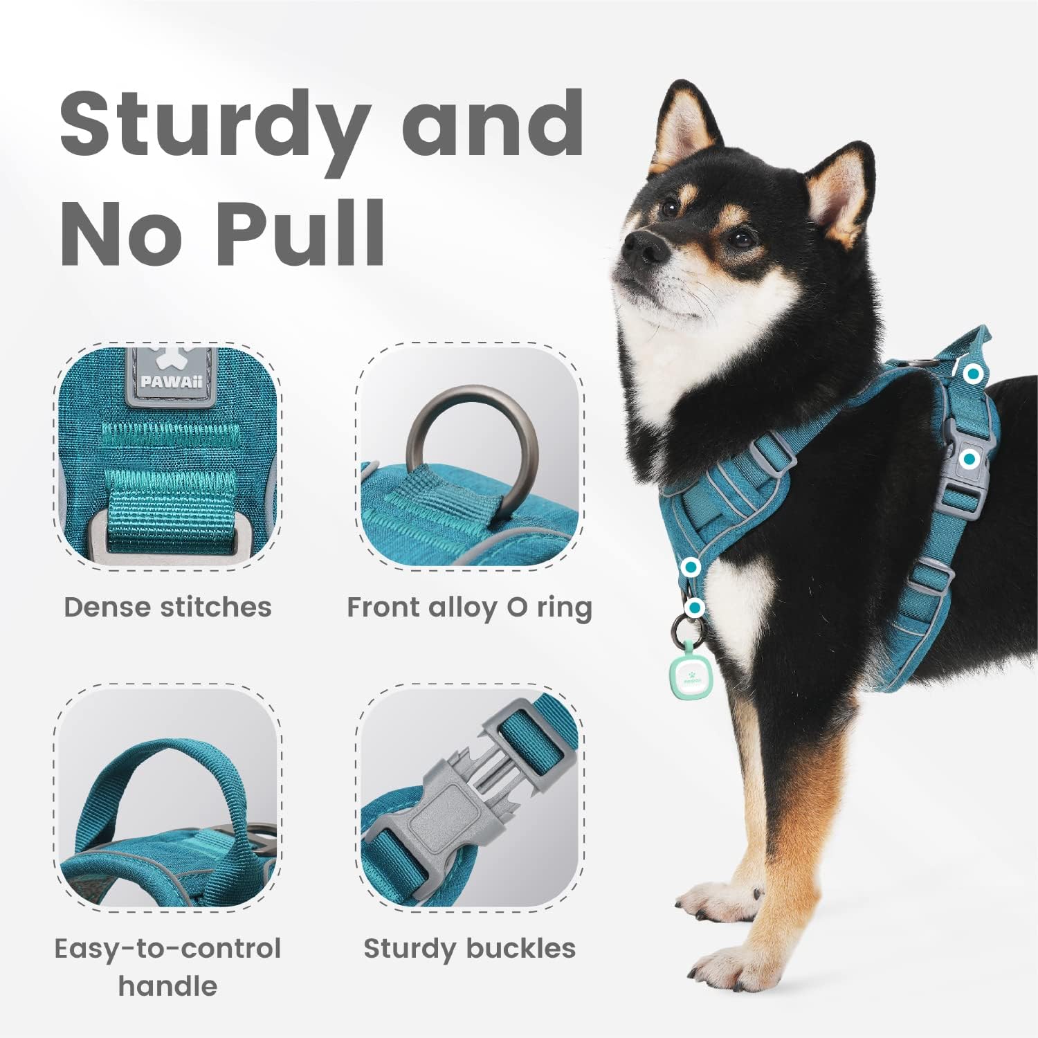 : The dog harness with handle features high-density webbing and 2 sturdy buckles which can withstand 10,000+ plug-pull tests.