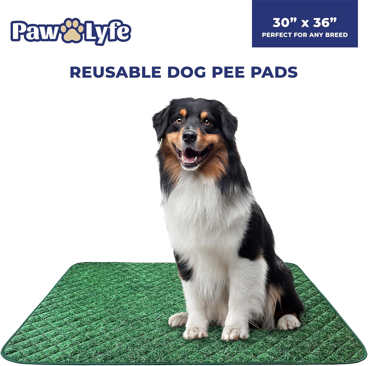 PawLyfe Dog Pee Pads, Reusable Puppy Pads, Pet Training Pads, Large Dog Pee Pad, Waterproof Pet Pads for Dog Bed Mat, Whelping Pads, Two 30″x36″ Pads with Printed Grass Design